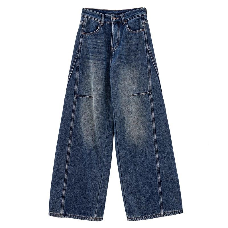 子 女秋宽松加长显瘦拖地阔腿镰刀裤 Pettyelsa美式 复古弯刀牛仔裤