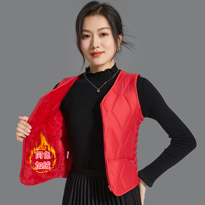 背心内胆 V领坎肩修身 2025新款 秋冬羽绒棉马夹女加绒加厚马甲短款