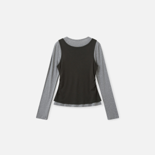 播灰色修身 上衣DDS4YD5294 圆领T恤女秋冬显瘦气质长袖