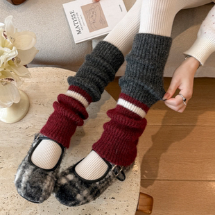 美拉德羊毛堆堆袜套女秋冬加厚保暖拼接撞色y2k辣妹毛线针织腿套