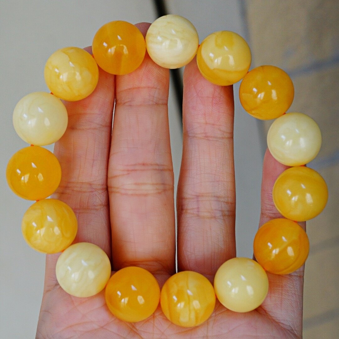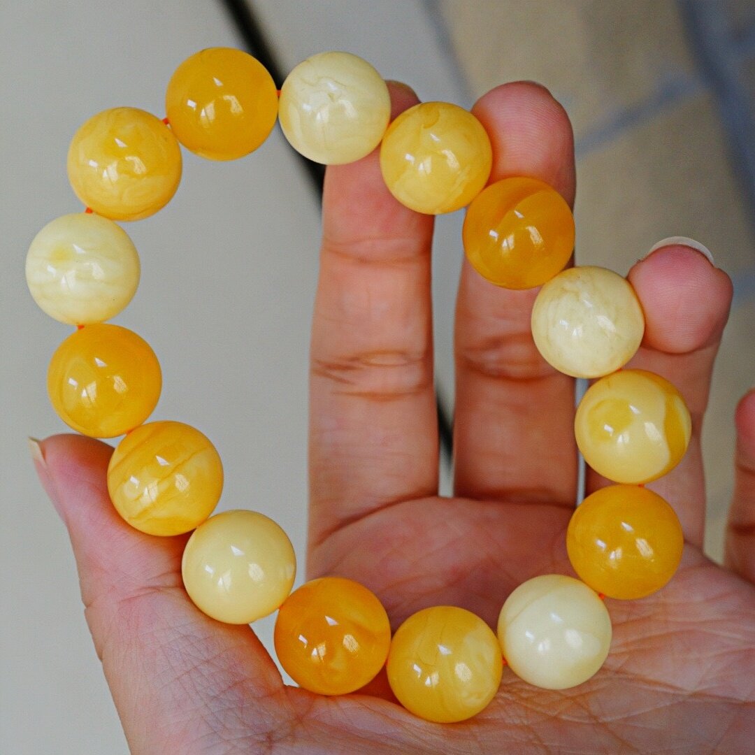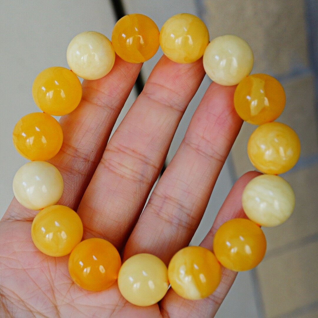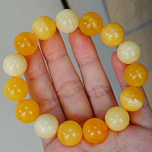 正品 文玩珠宝饰品 天然俄料精品焦皮料多宝蜜蜡14mm圆珠手串男女款