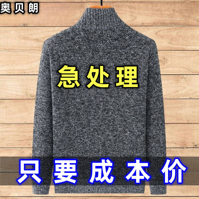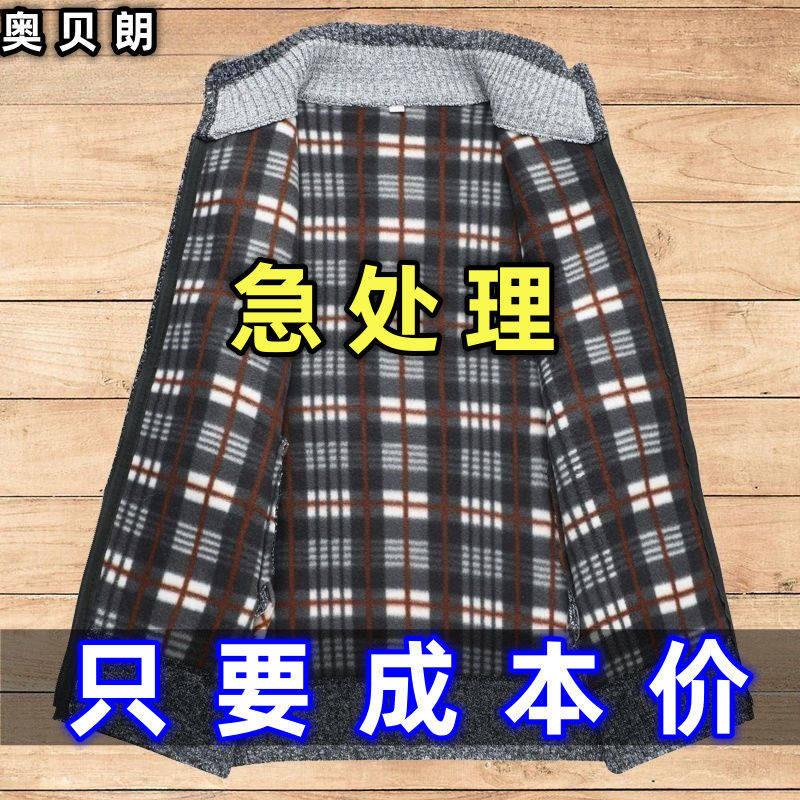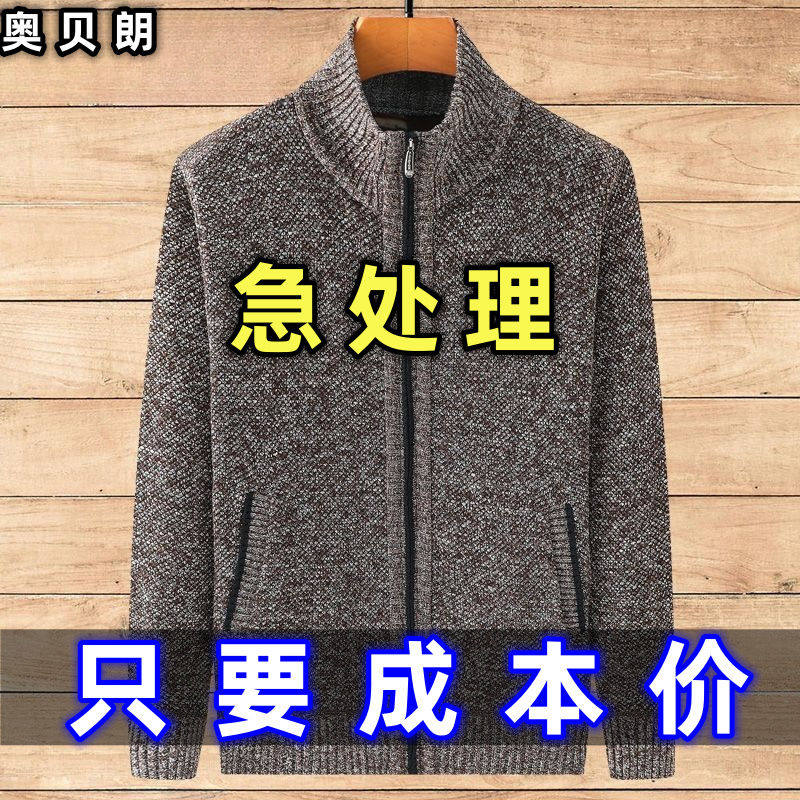 中年休闲加绒加厚爸爸秋装 2024男士 秋冬季 新款 针织毛衣 拉链开衫