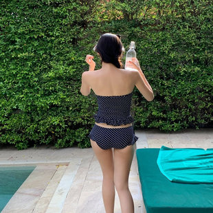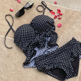 沿海时光泳衣女复古波点分体三角性感辣妹钢托聚拢胸度假温泉泳装
