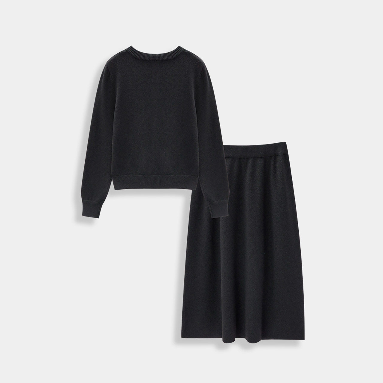 爱依服 2025秋冬新款 微胖 女装 休闲慵懒风毛织上下套裙 大码 IEF