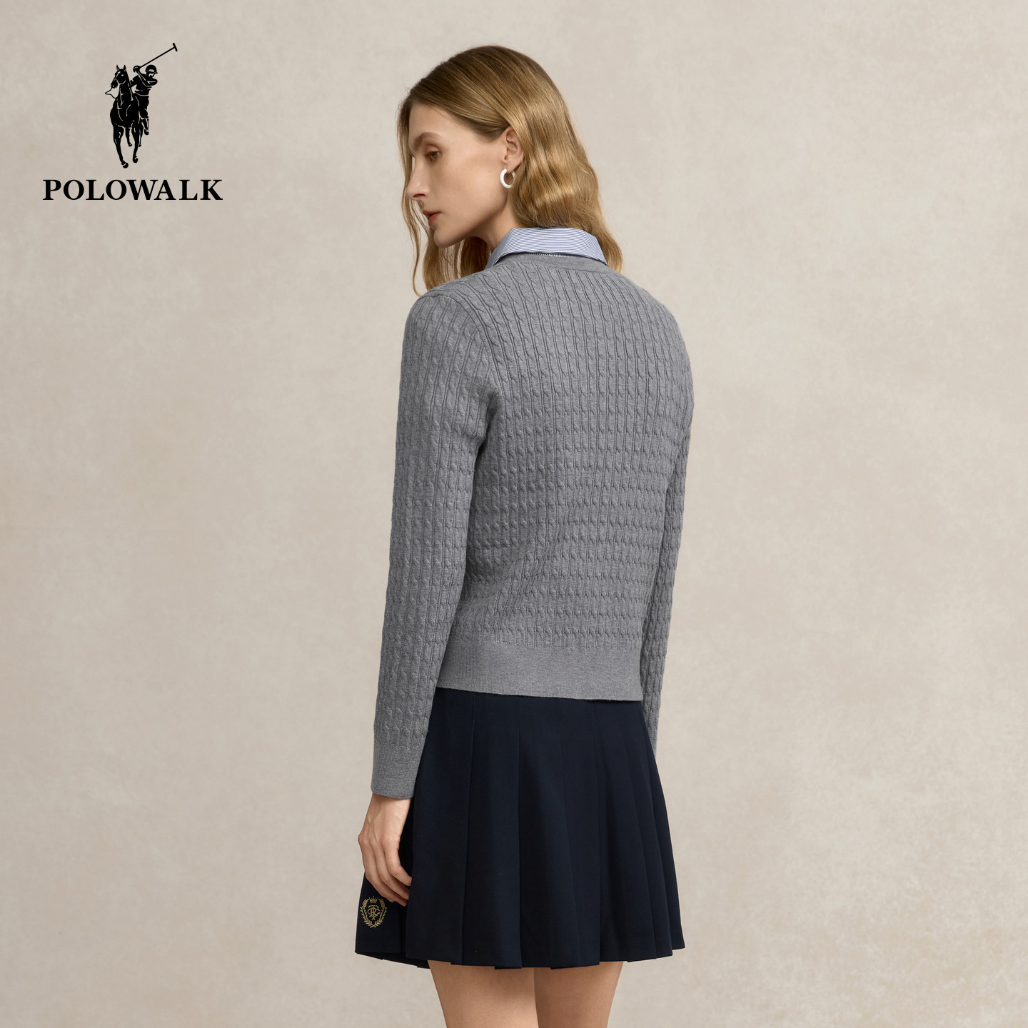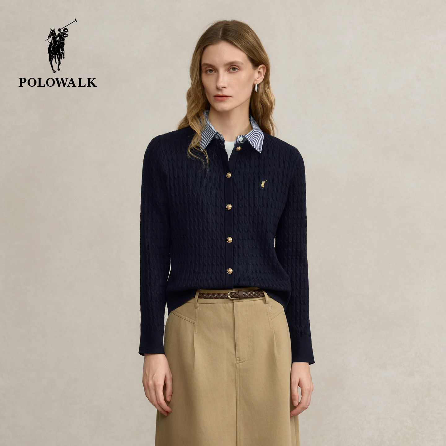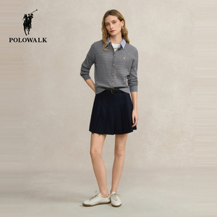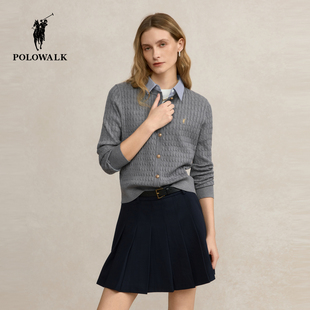 长袖 针织衫 2025秋季 显瘦绞花开衫 POLOWALK女式 新品 女 含绵羊毛