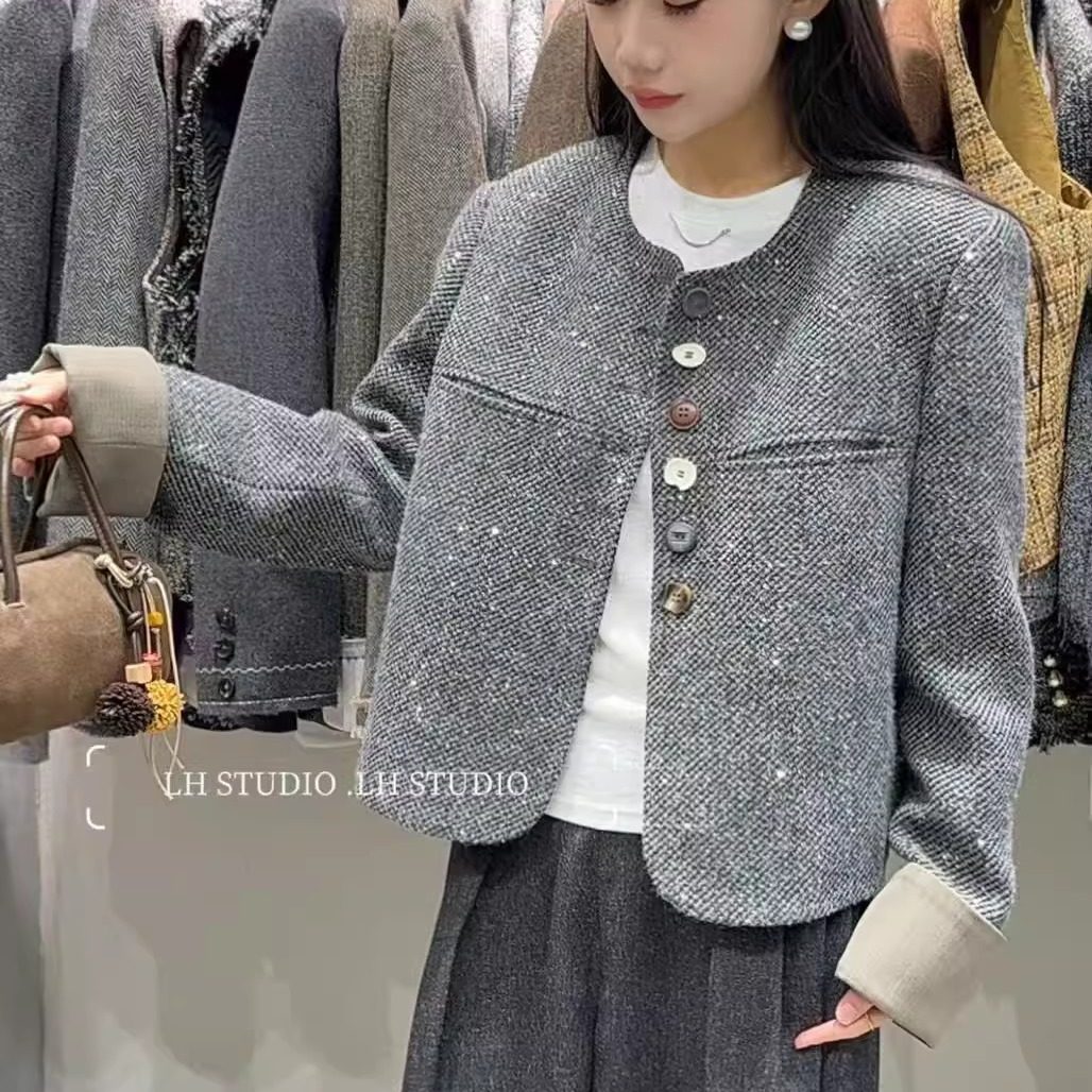 柔柔家实拍阿兰小香休闲外套2025秋季 简约小香风气质短外套9652完