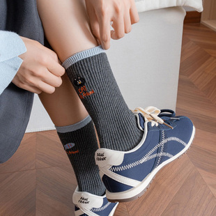 棉质撞色秋冬韩系可爱卡通中筒袜 猫咪刺绣袜子女AB款 起步韩袜