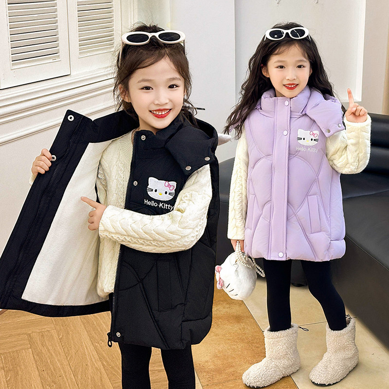 女童羽绒棉马甲2025秋冬款 KT猫休闲绗线加绒加厚坎肩可爱外穿背心