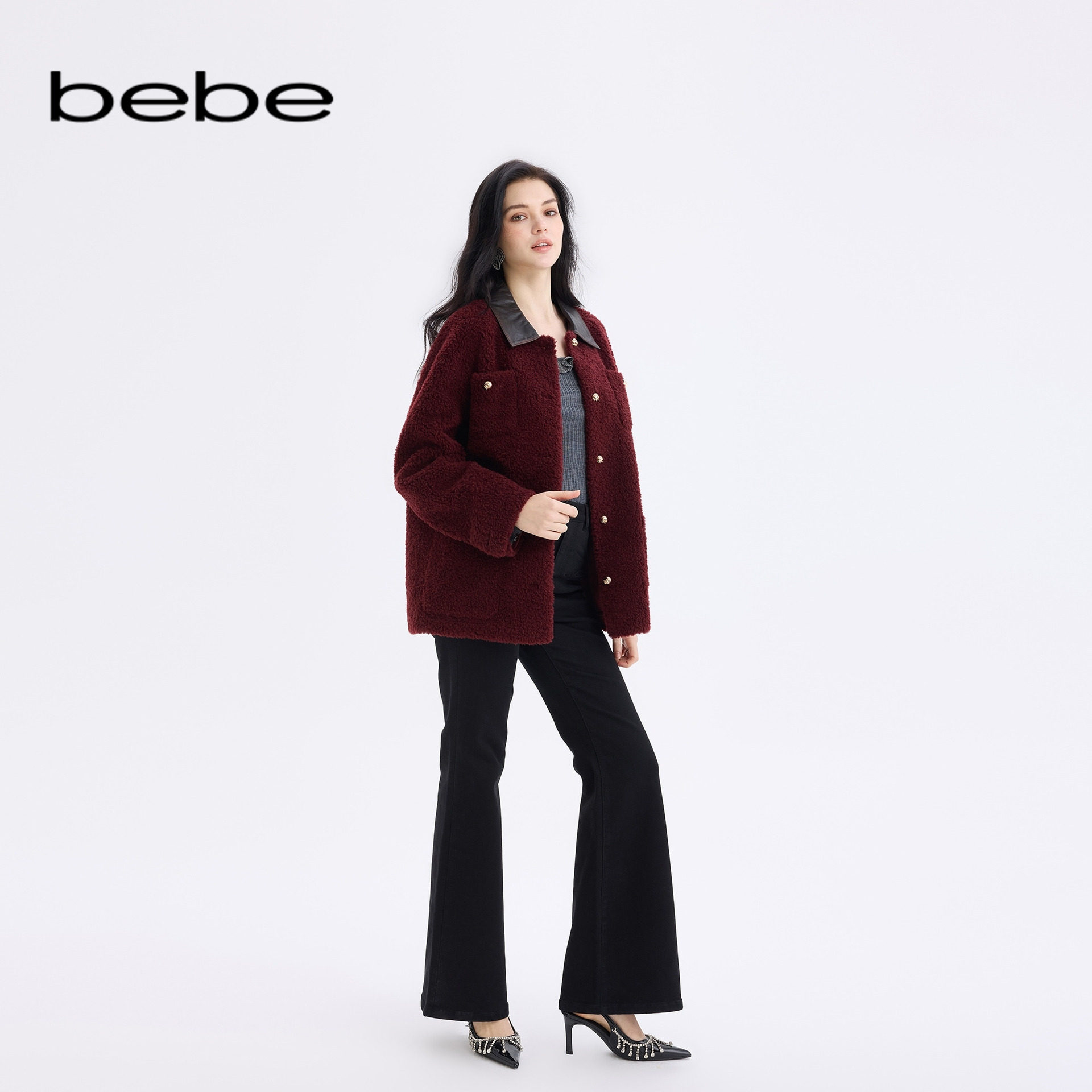bebe2025秋冬新款 女士摩登羊毛质感仿皮草外套402118