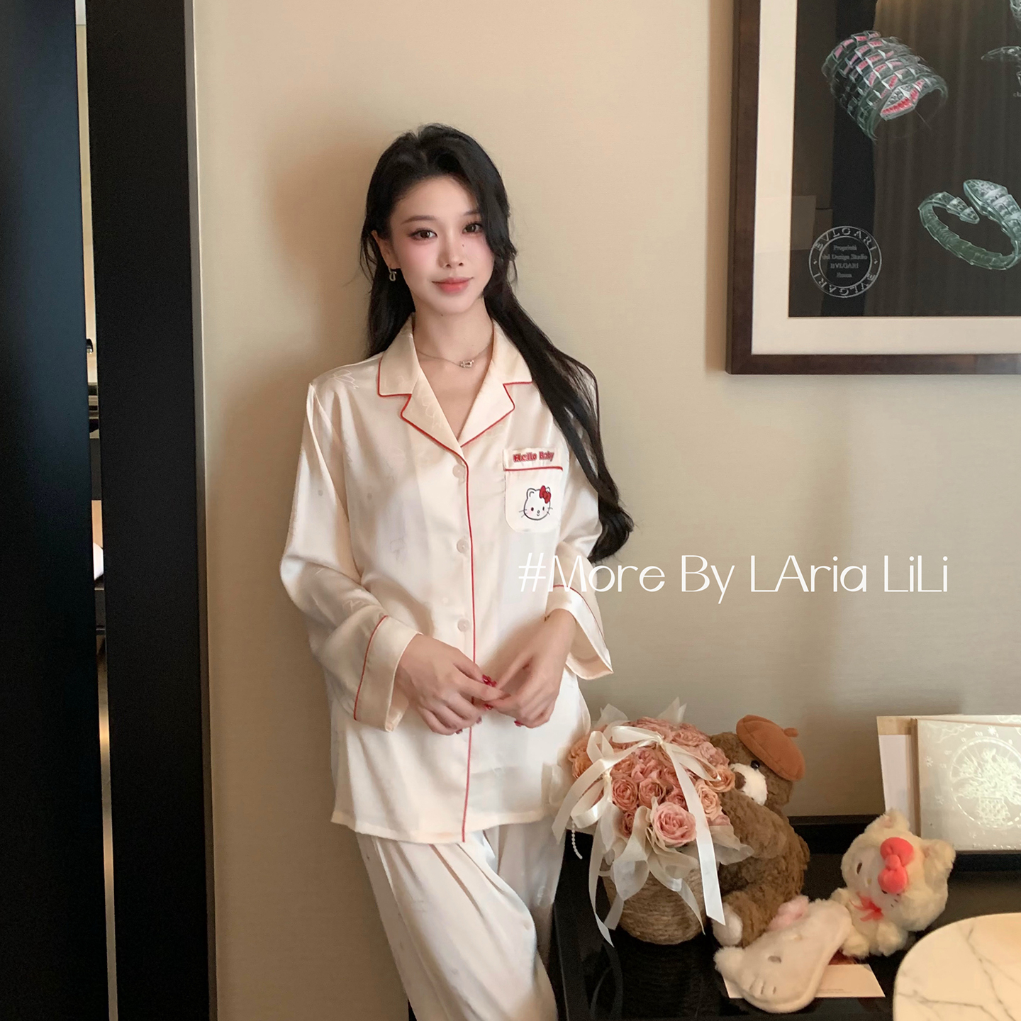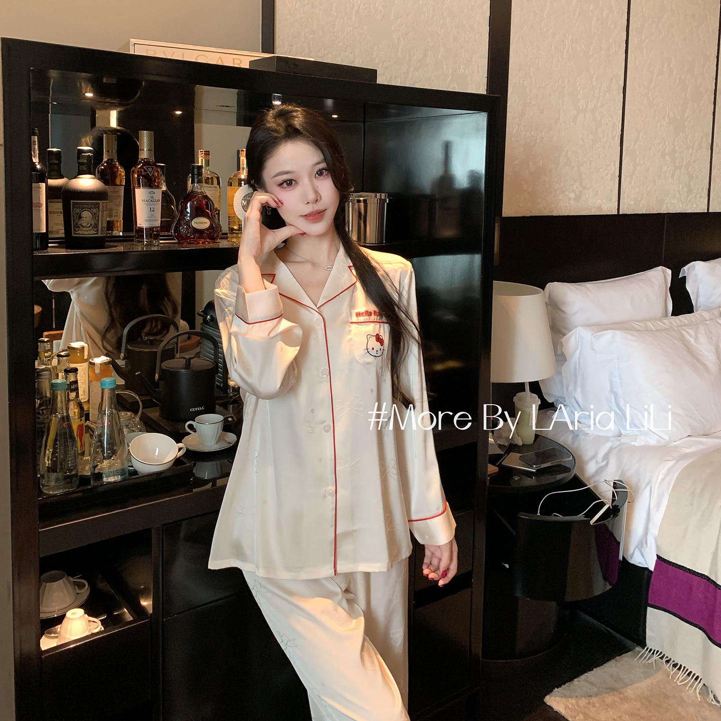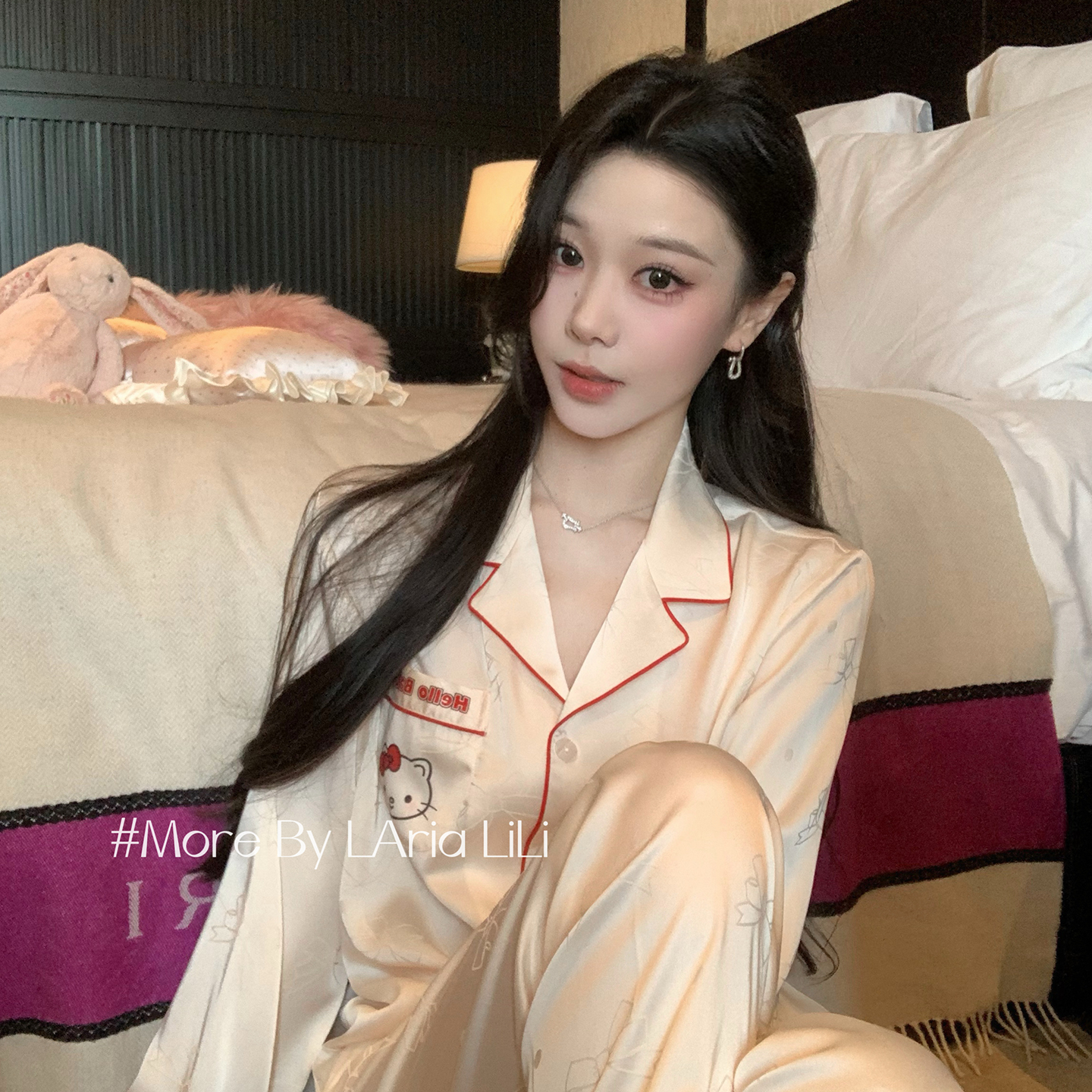 秋冬季 可外穿家居服 珊瑚绒加厚睡衣女kitty猫可爱圆领法兰绒套装