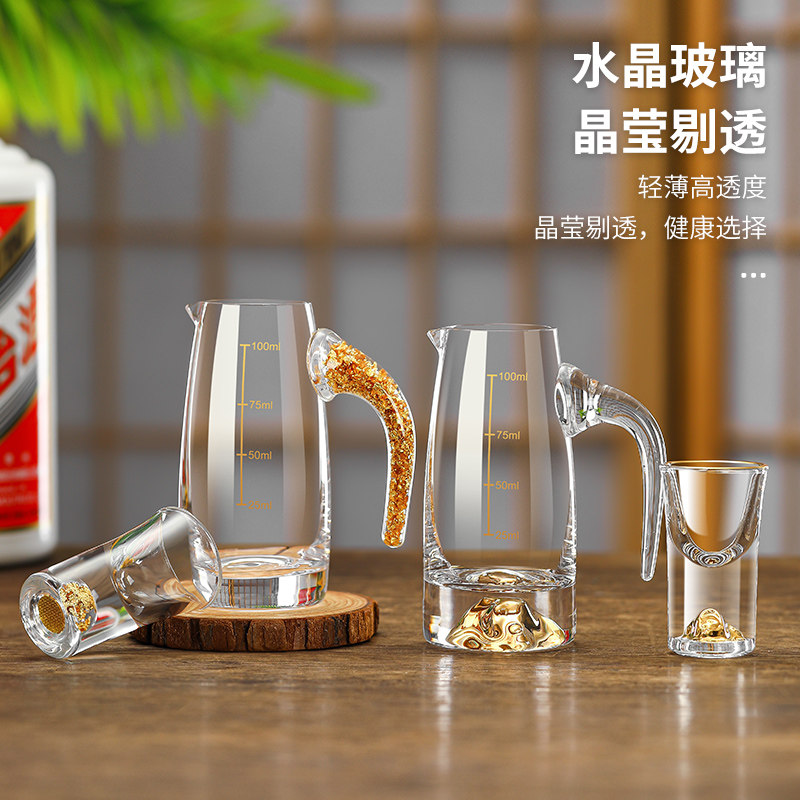 家用金箔白酒杯分酒器酒壶烈酒醒酒器带刻度量酒器公道杯玻璃扎壶
