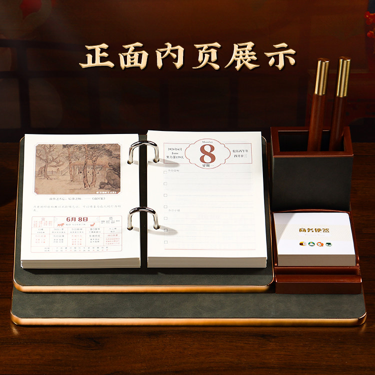 2026年新款 记事打卡日历公司企业定制logo广告实用礼品 台历创意金边笔筒商务商务桌面摆件精美礼盒月历个性