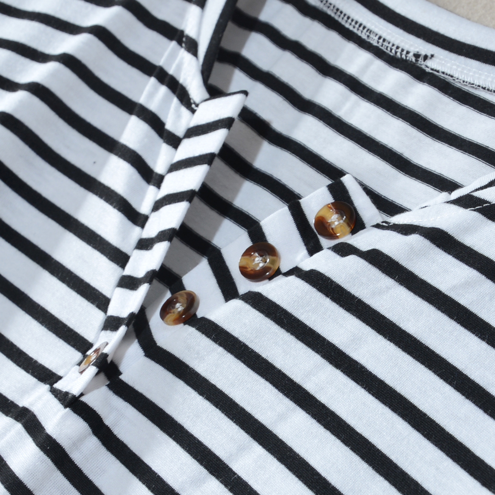 宽松V领条纹显瘦T恤衫 2025年夏装 休闲风短袖 女款 上衣服减龄潮 新品