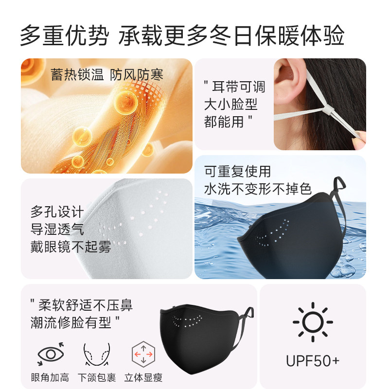 防晒面罩防风防寒防冻秋冬口罩 保暖透气保湿 蕉内热皮302 男女同款