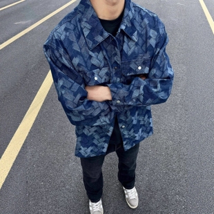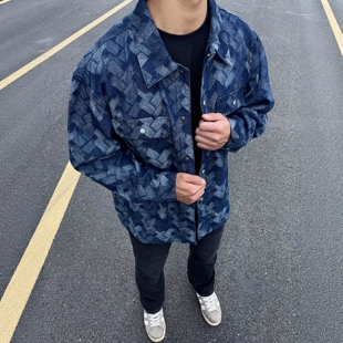 美式 复古设计感原色牛仔外套宽松百搭正肩口袋cleanfit夹克上衣男