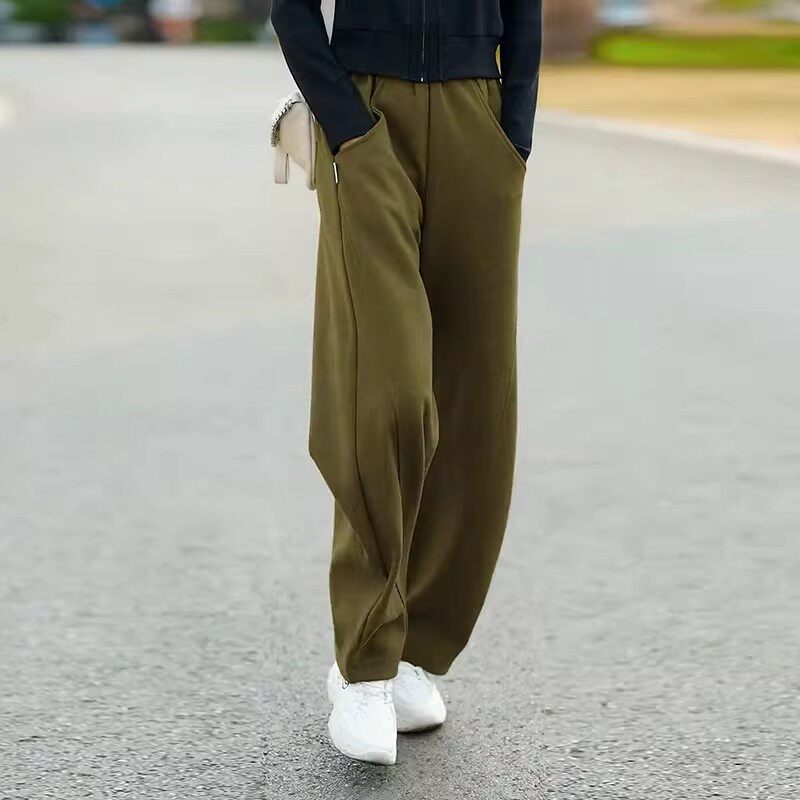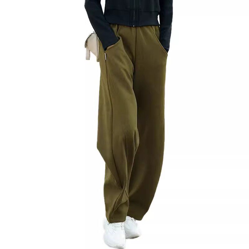 加绒休闲直筒高腰阔腿卫裤 女秋冬新款 145 香蕉裤 150九分小个子窄版