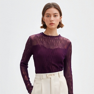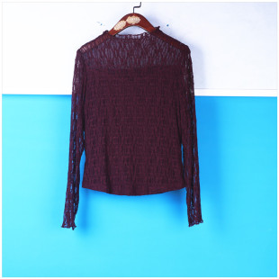 1325 30年知名品牌木耳领蕾丝打底衫 丽新折扣女装 M魅系列25秋装