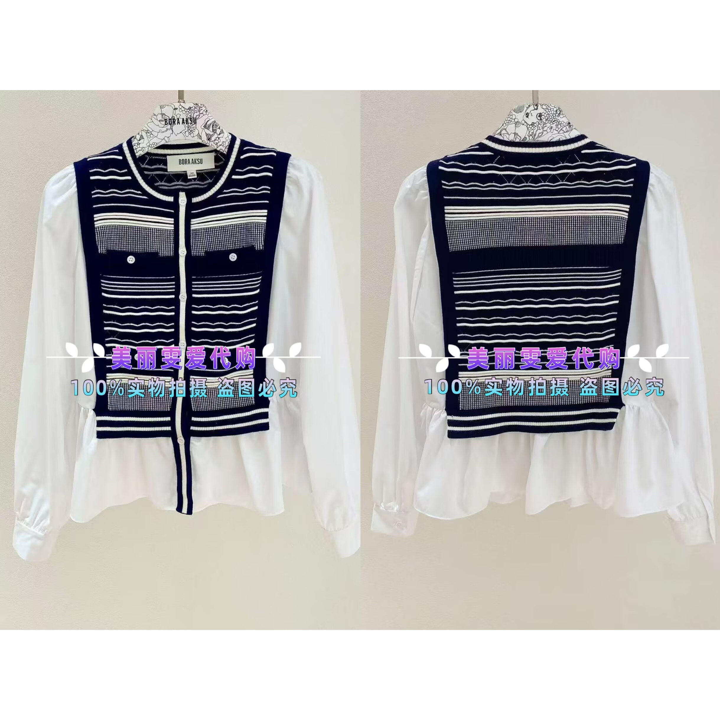 2024秋装 BORAAKSU宝莱阿卡苏B1EFW20090拼色针织白衬衫