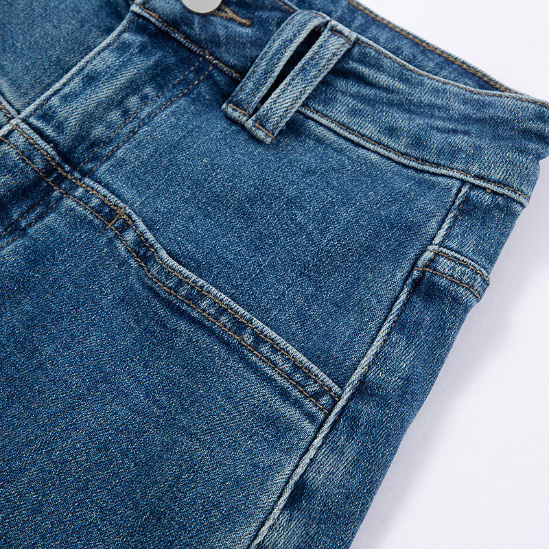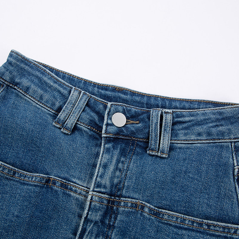 磨白做旧高腰中长a字裙半身裙5501 时尚 布景牛仔裙女春季 新品