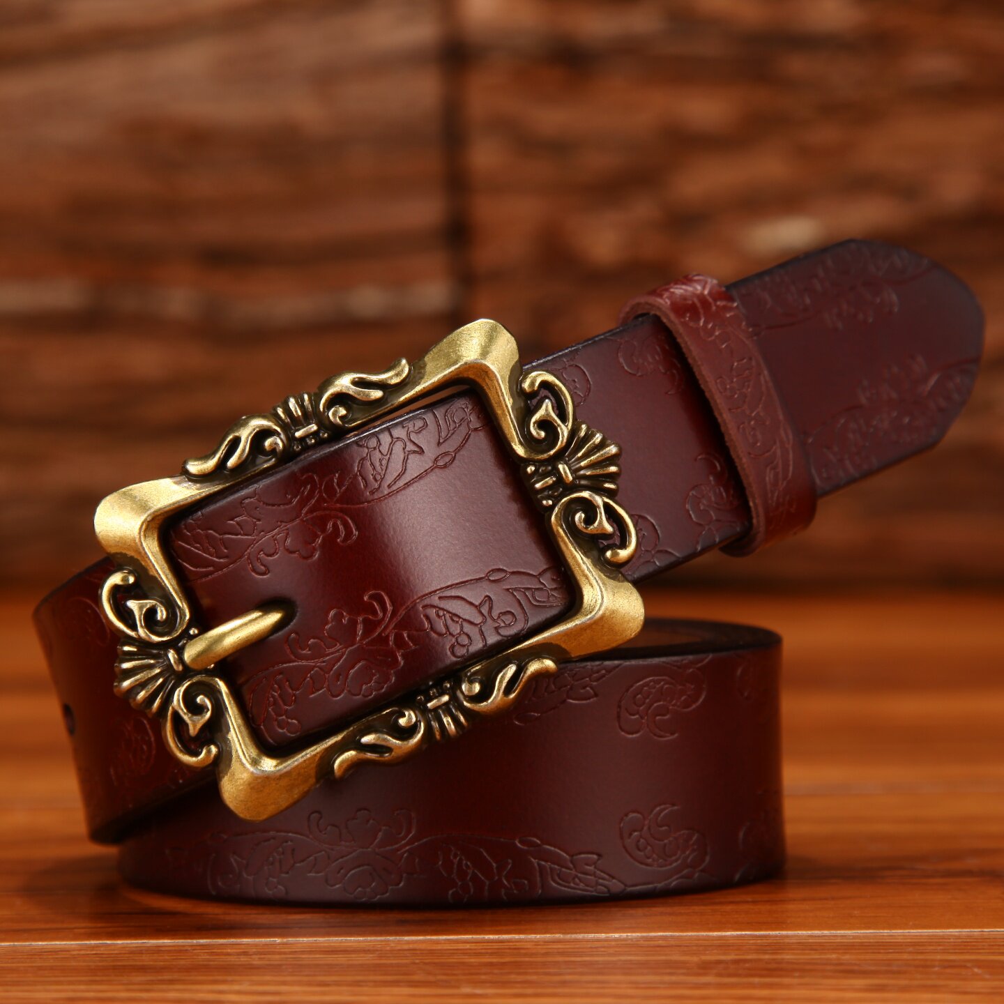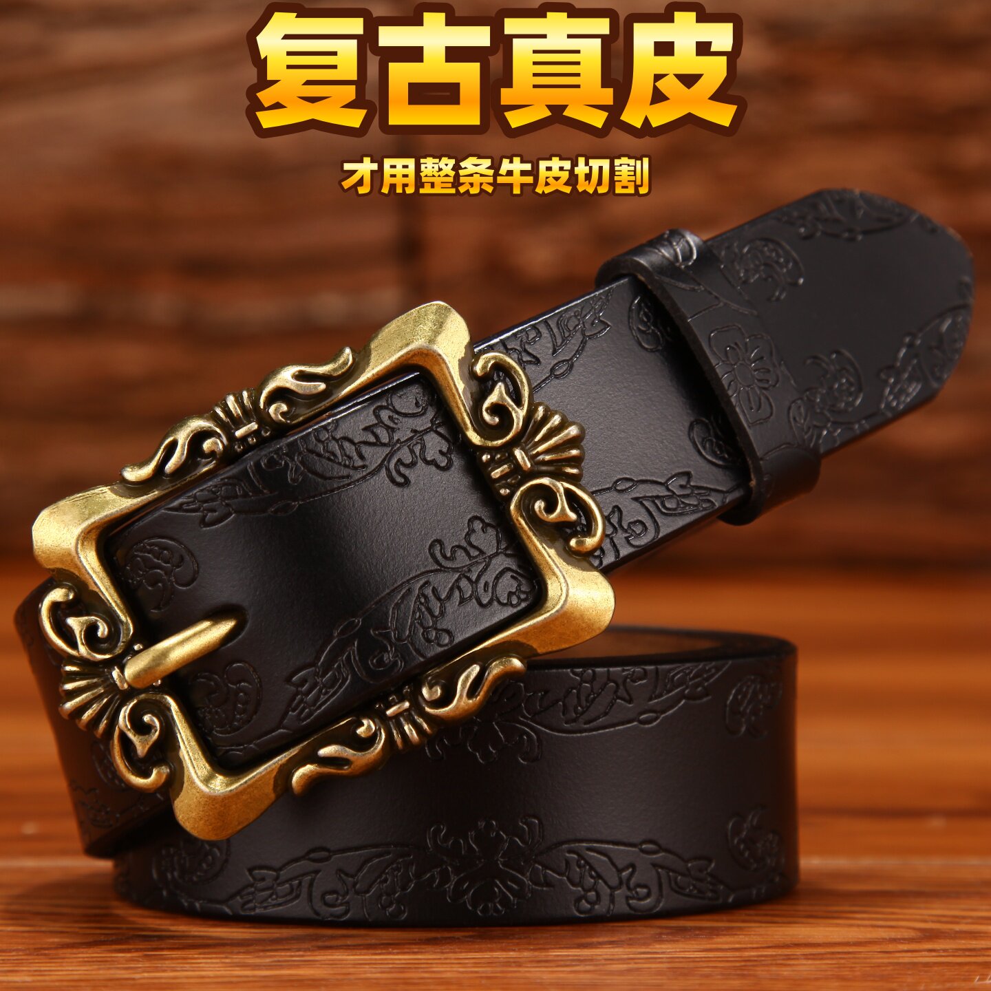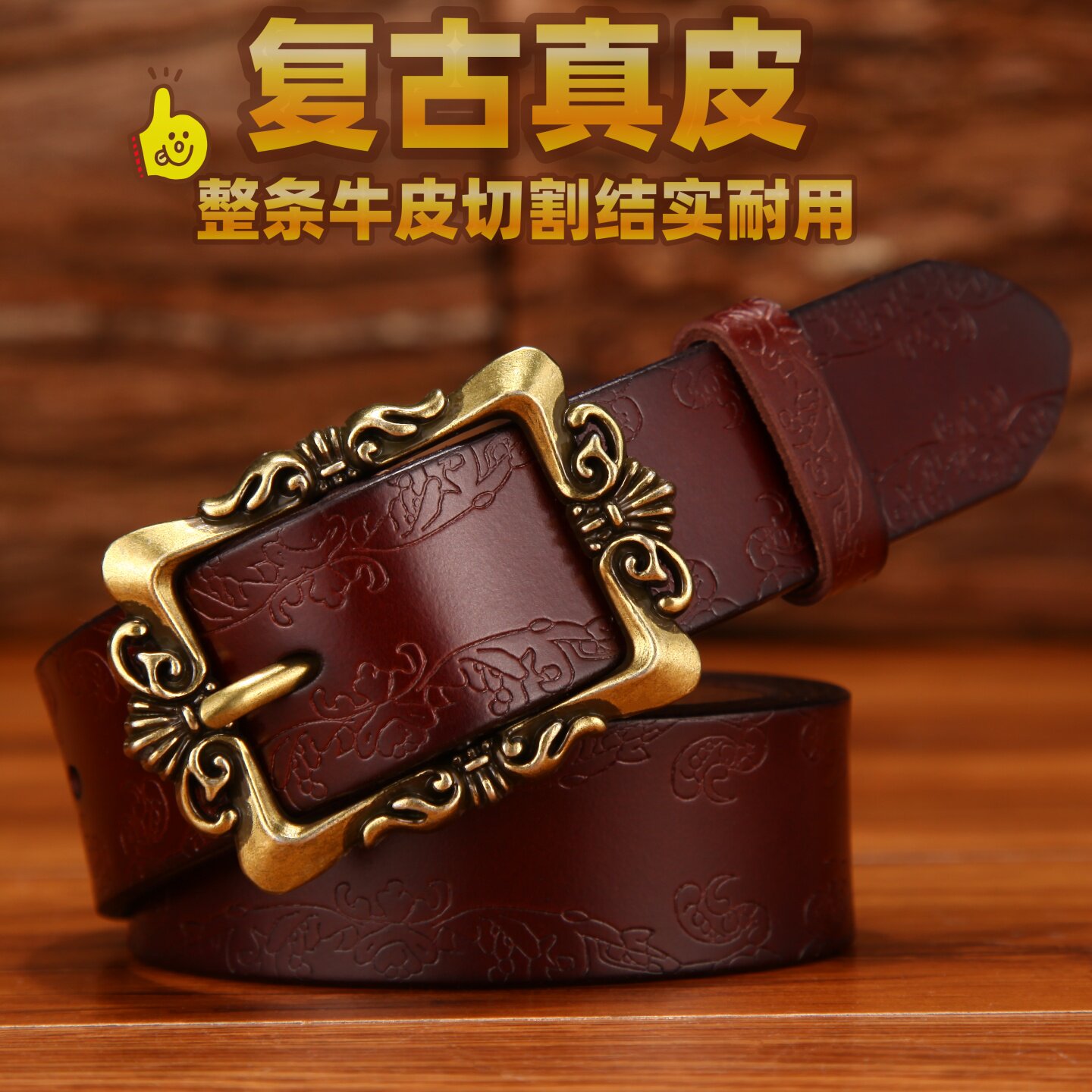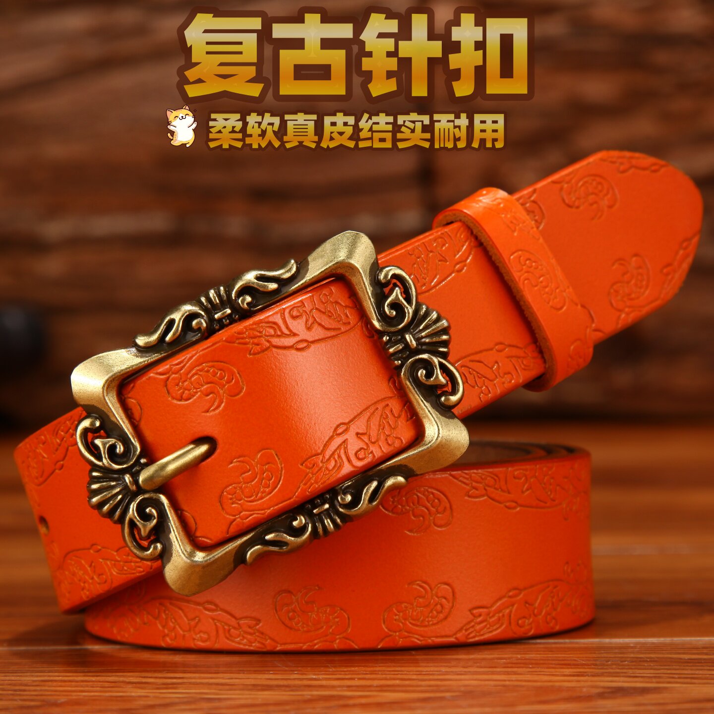针扣裤 腰带高级感韩版 带休闲 饰牛仔裤 复古女士皮带真皮简约百搭装