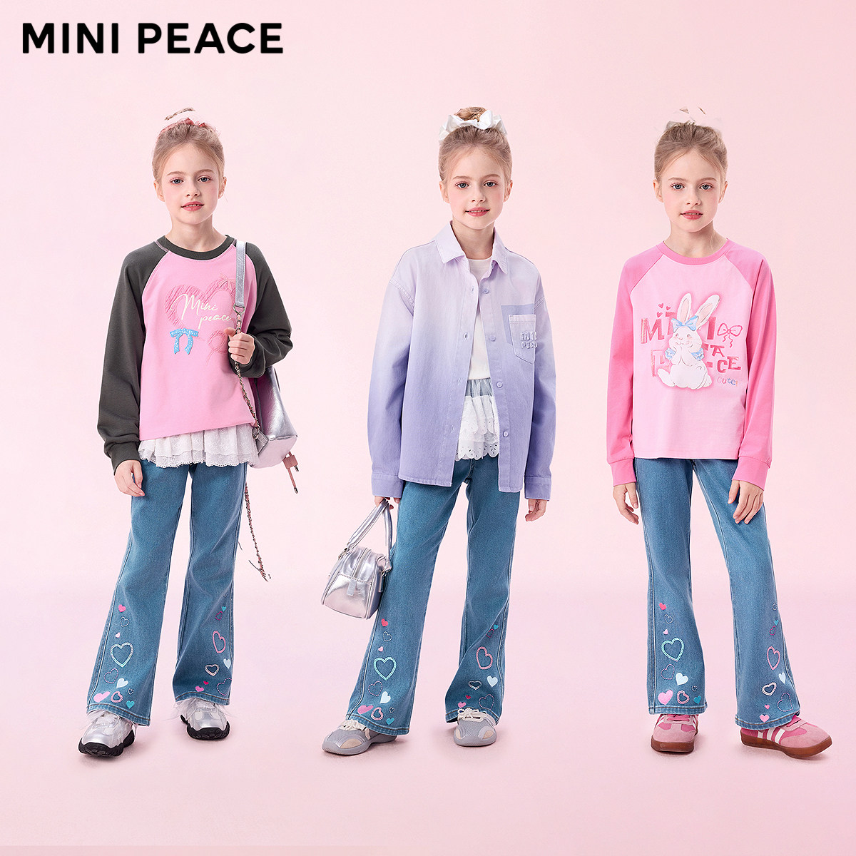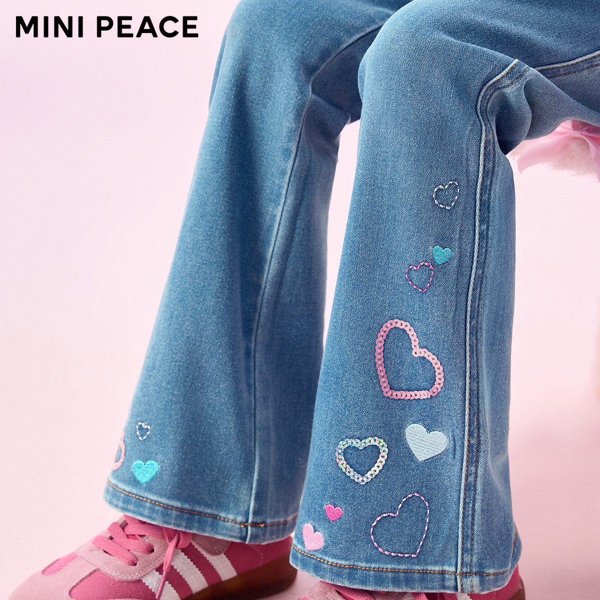 亮片爱心儿童长裤 MINIPEACE太平鸟童装 新款 秋季 女童牛仔喇叭裤