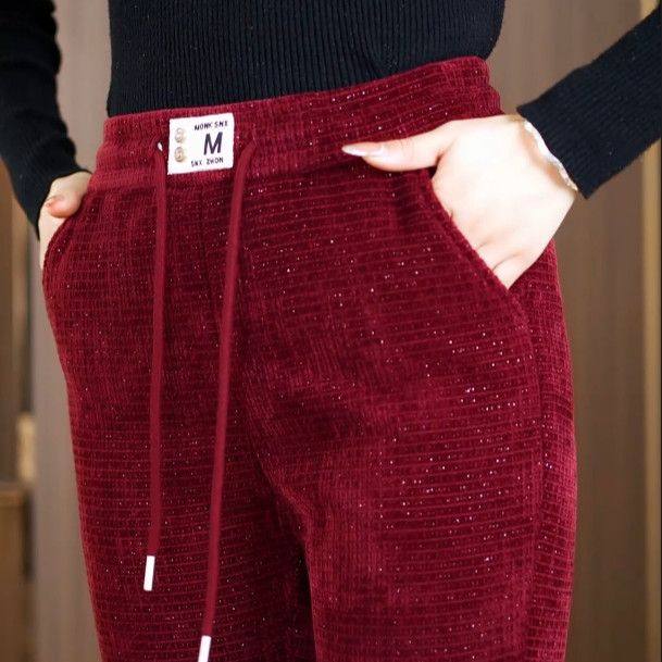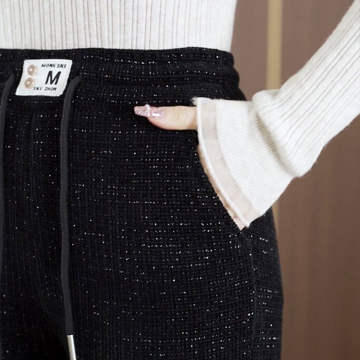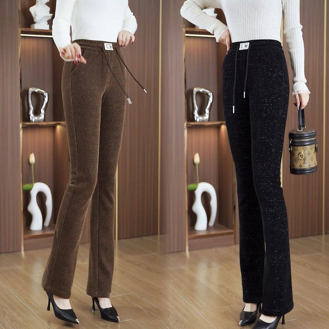 星空闪亮裤 保暖休闲裤 高腰加绒加厚喇叭裤 新款 显瘦百搭 女冬季 正版