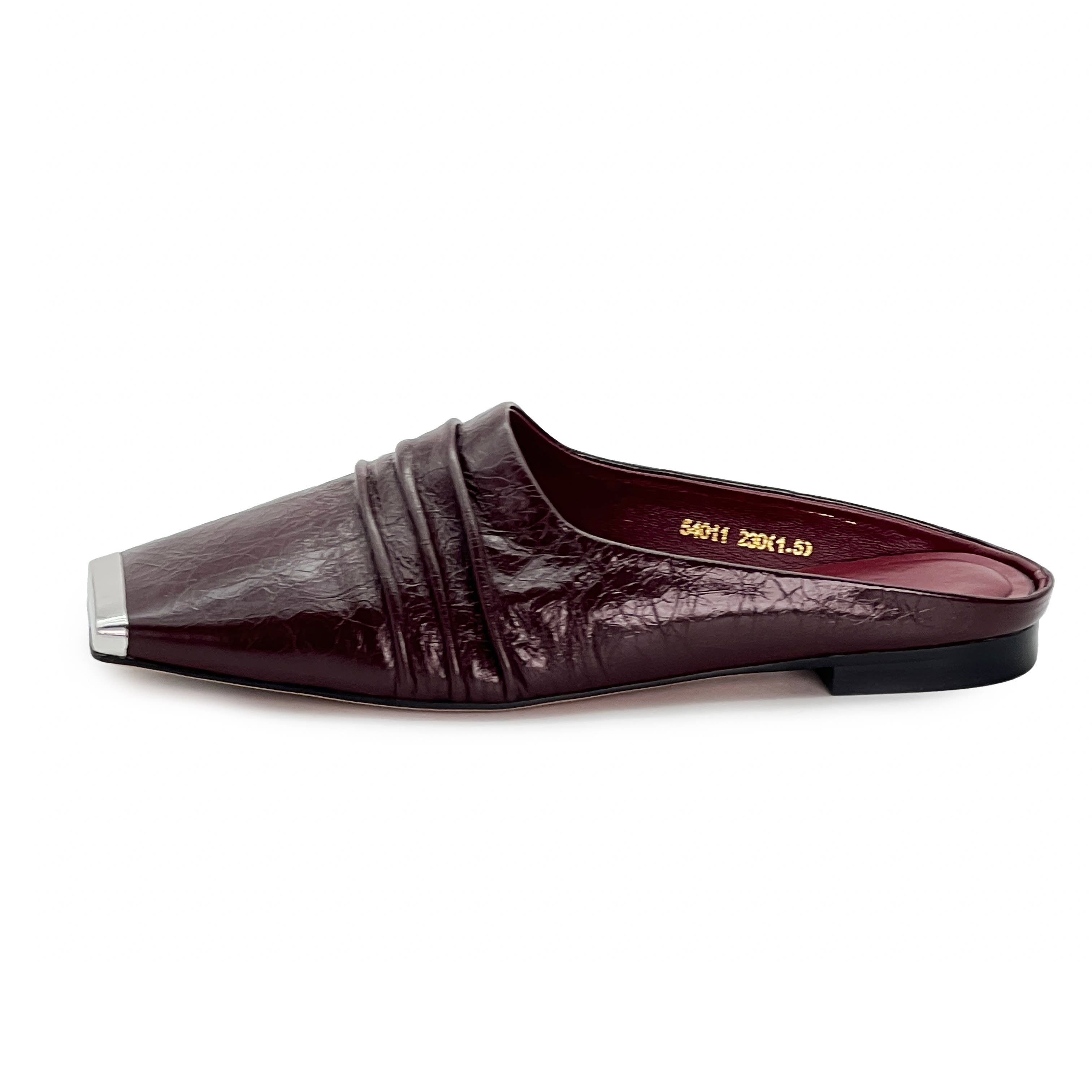 法式 油蜡牛皮面 轻语覆 复古平底拖54011 大愿专享