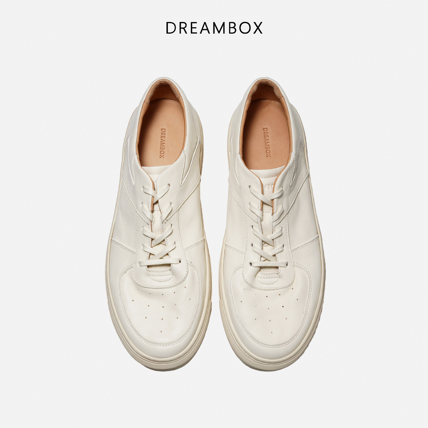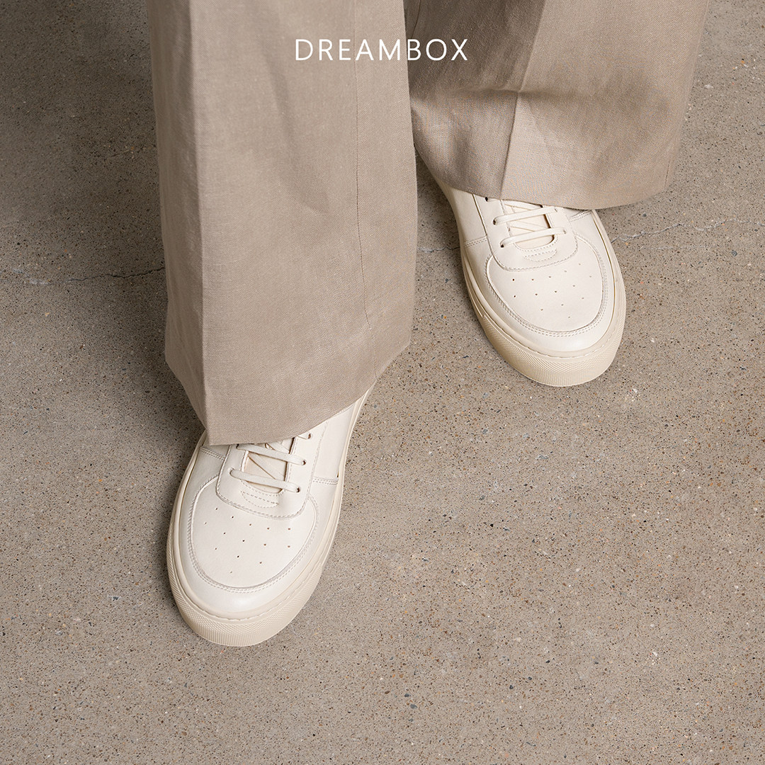 软皮舒适透气休闲板鞋 DREAMBOX钧博石洗马皮百搭小白鞋 2026新款