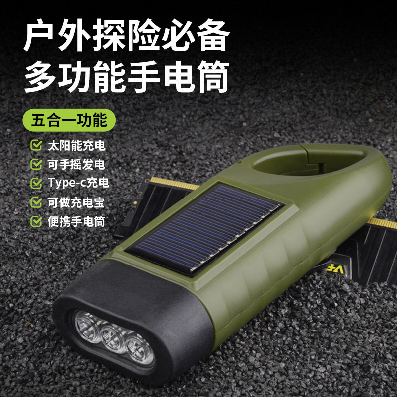 便携户外太阳能灯LED应急手摇发电USB充电多功能NJ 抢