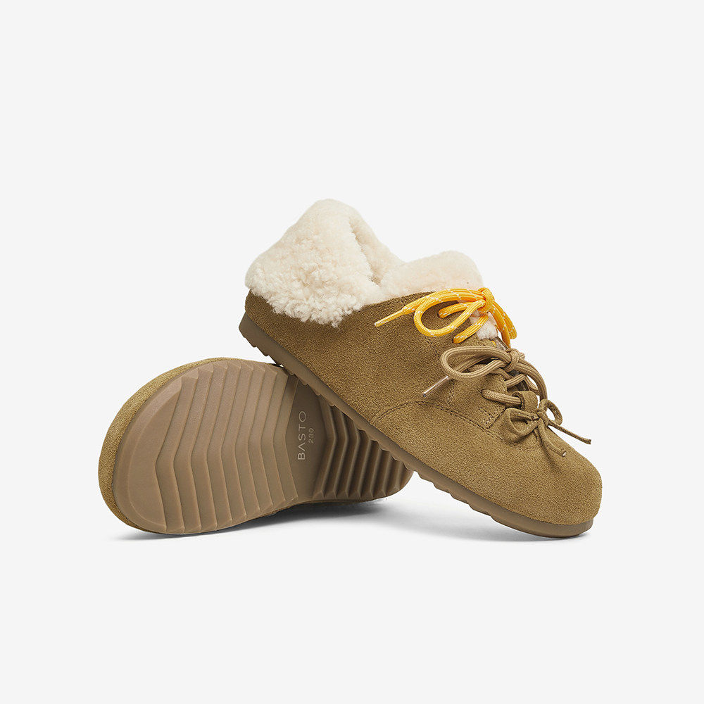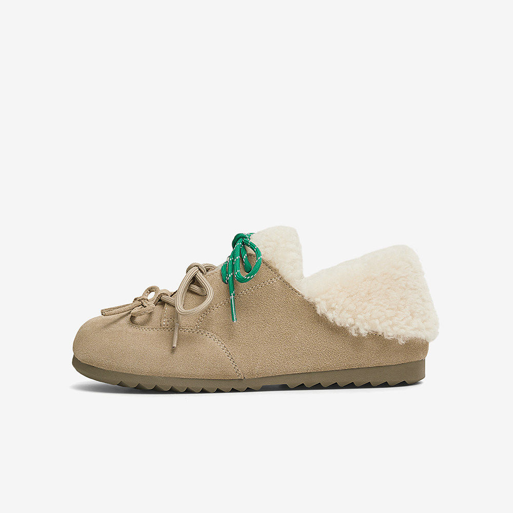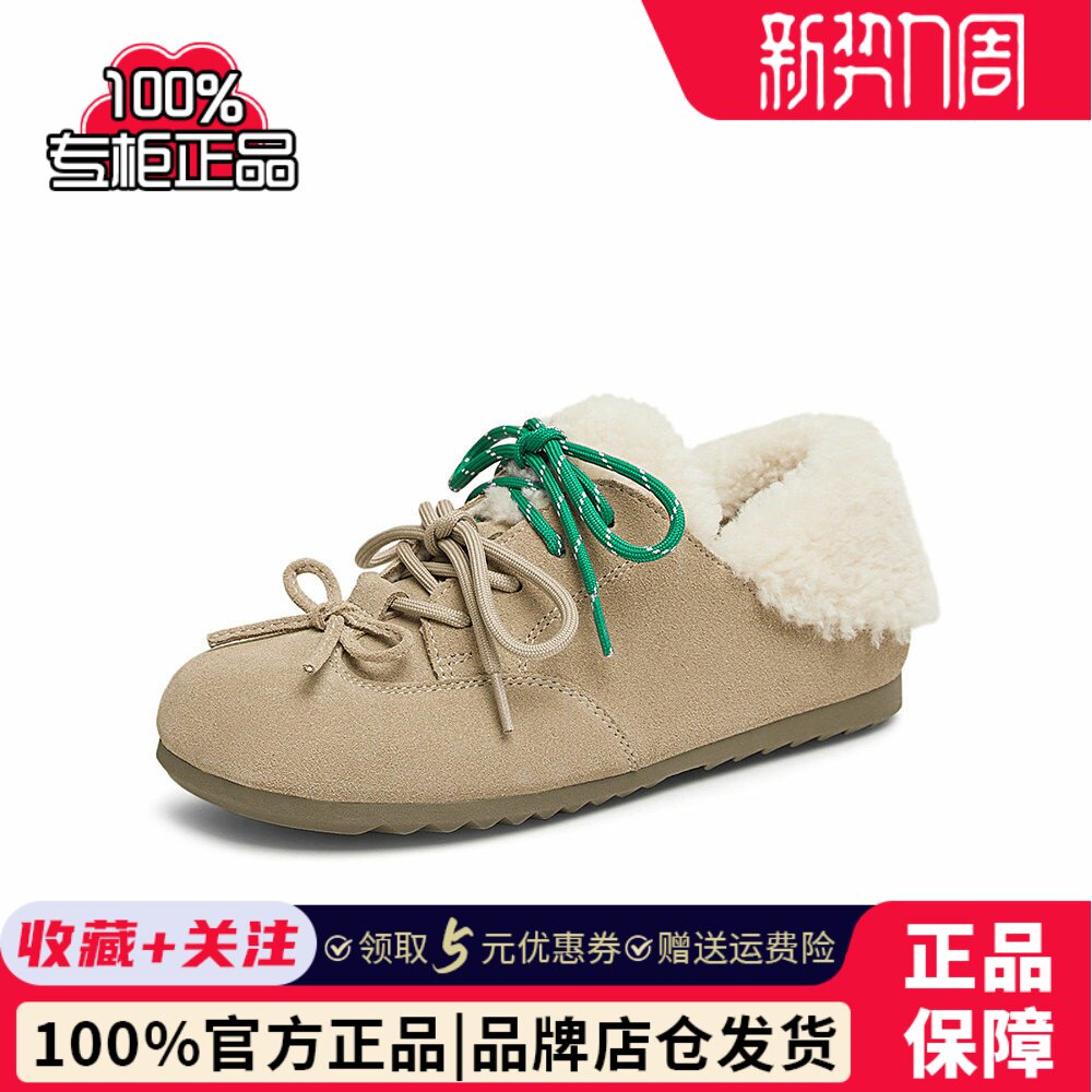 V4368AM5 平底女休闲单鞋 百思图2025春新款 真皮加绒加厚保暖勃肯鞋