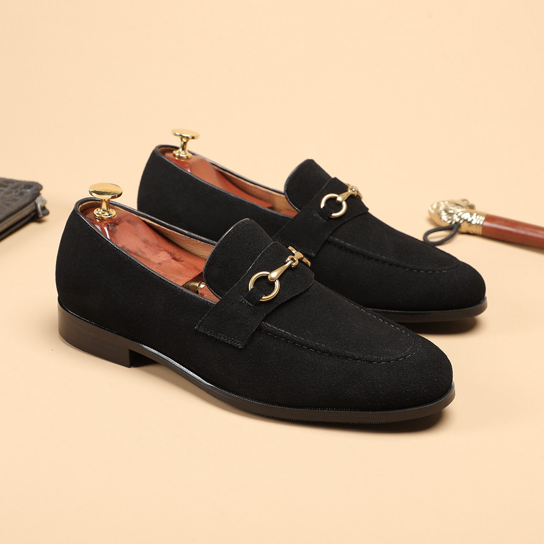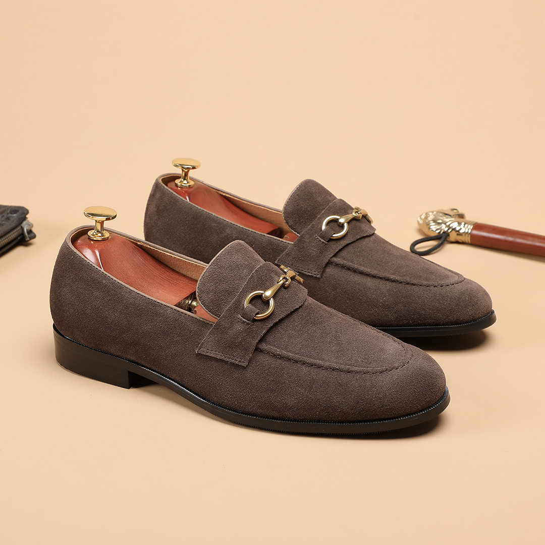 磨砂牛皮手工一脚蹬英伦复古休闲皮鞋 男式 马衔扣乐福鞋 2026春新款