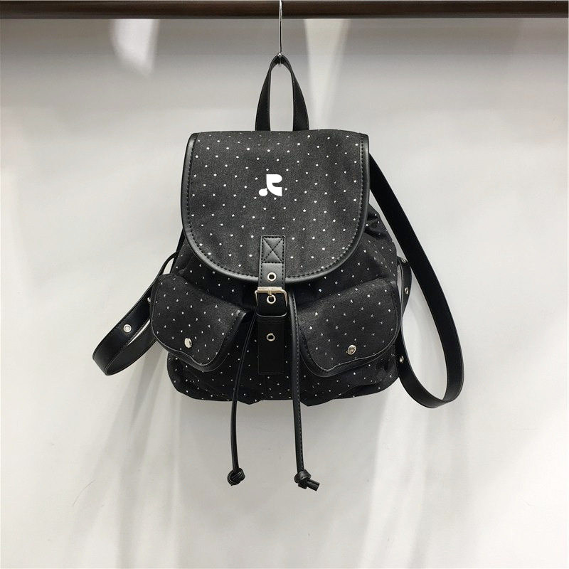 韩国代购 波点牛仔帆布包学院风甜酷双肩包大容量背包 Retionan