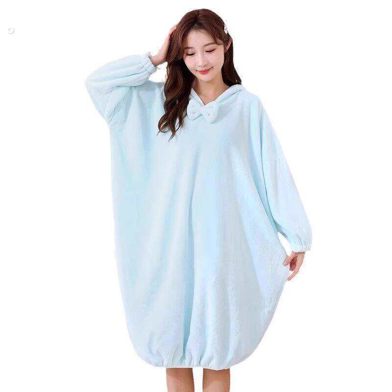 秋冬浴袍可穿浴巾女家用珊瑚绒吸水柔软速干浴裙洗澡睡袍睡衣连帽