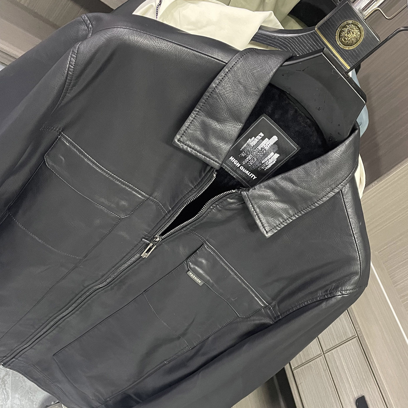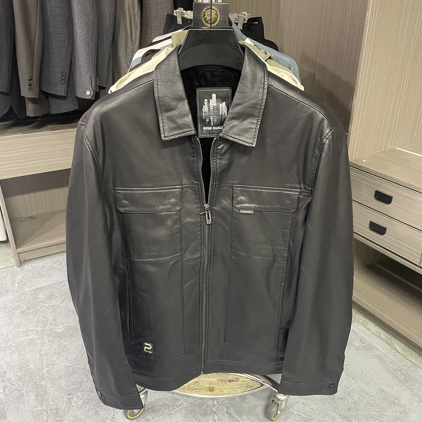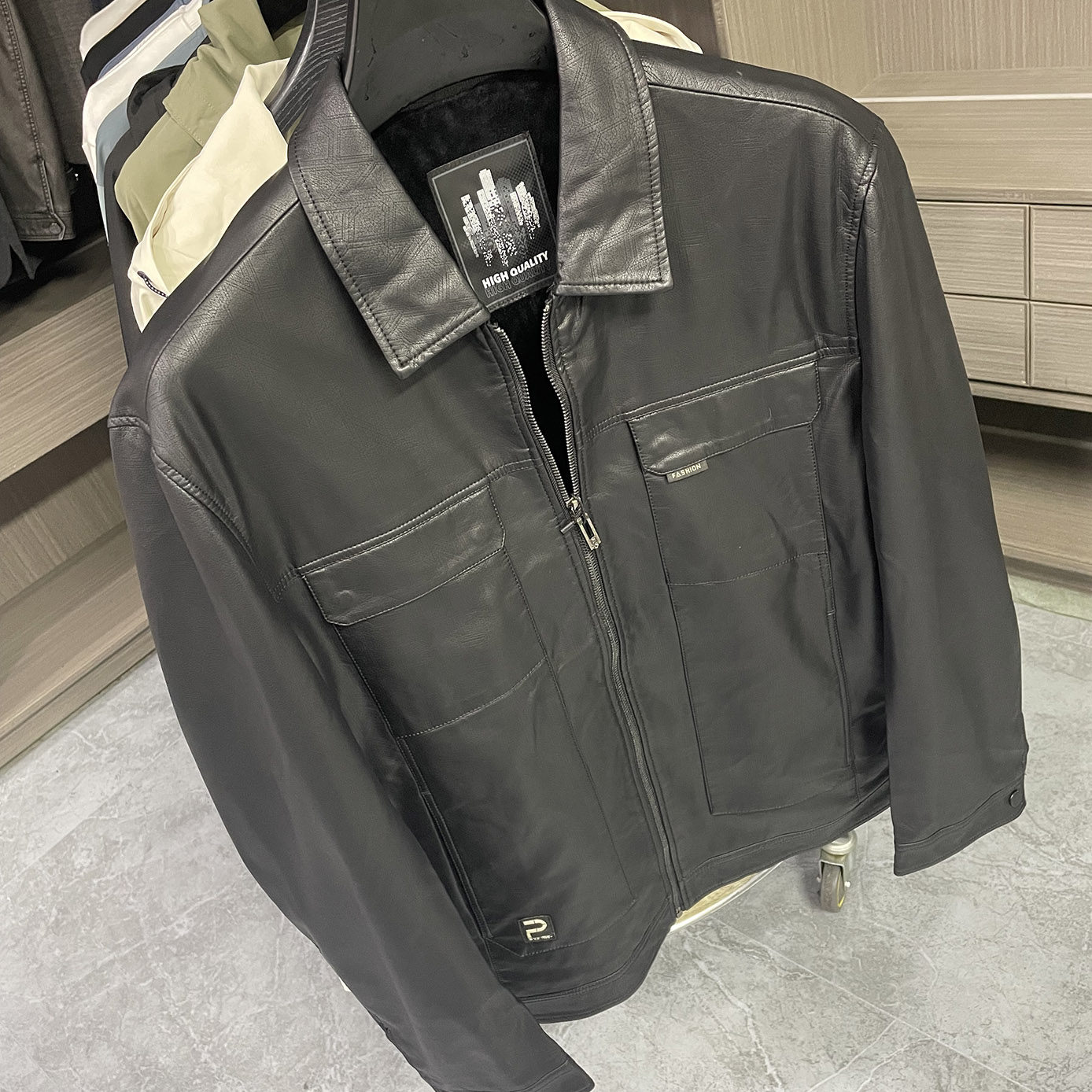 特价 断码 PU皮衣男翻领夹克加绒黑色休闲外套 明显设计 柜货余单
