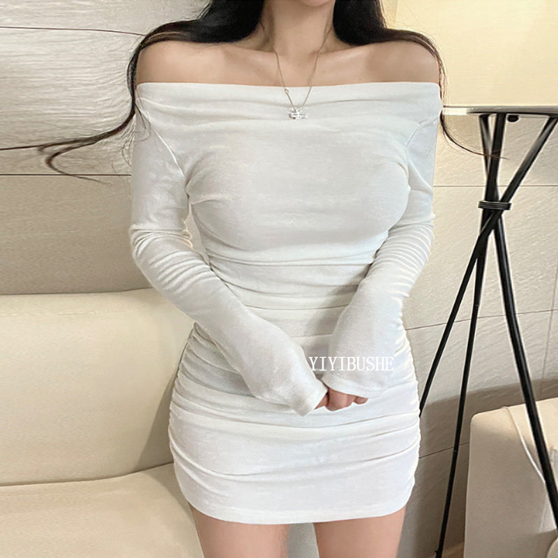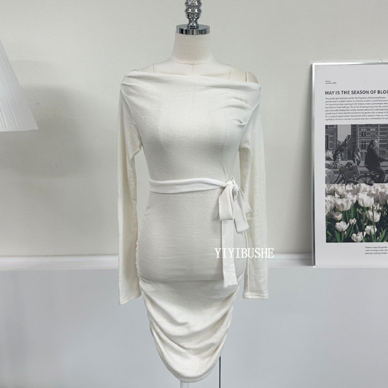 性感露肩显身材包臀飘带连衣裙 PU165韩系氛围感拉满 韩国代购 正品