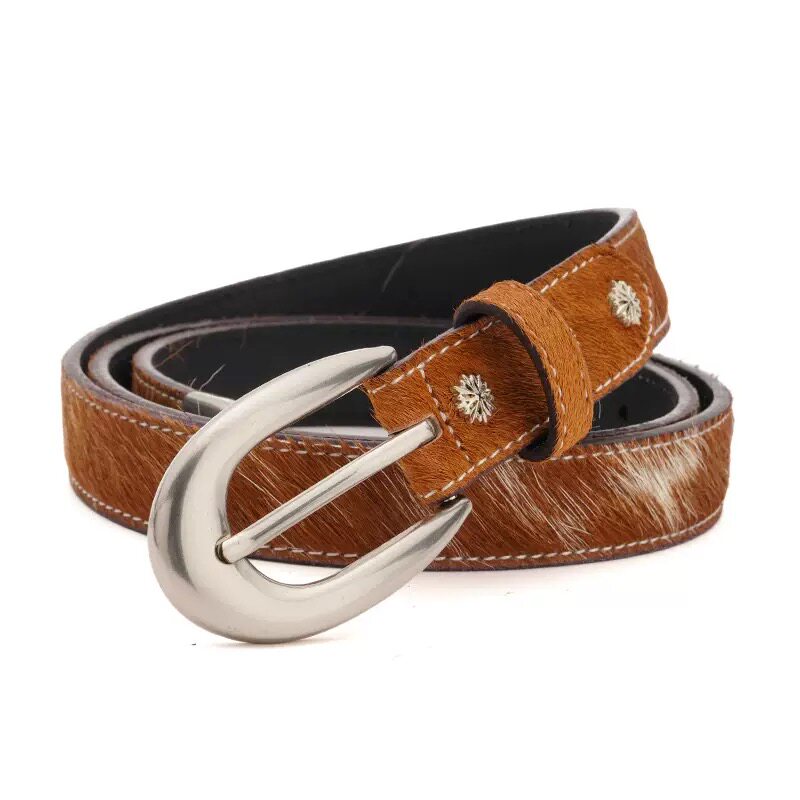 afaaa夯货意大利进口头层牛皮腰带复古vintage真马毛皮带马蹄银扣