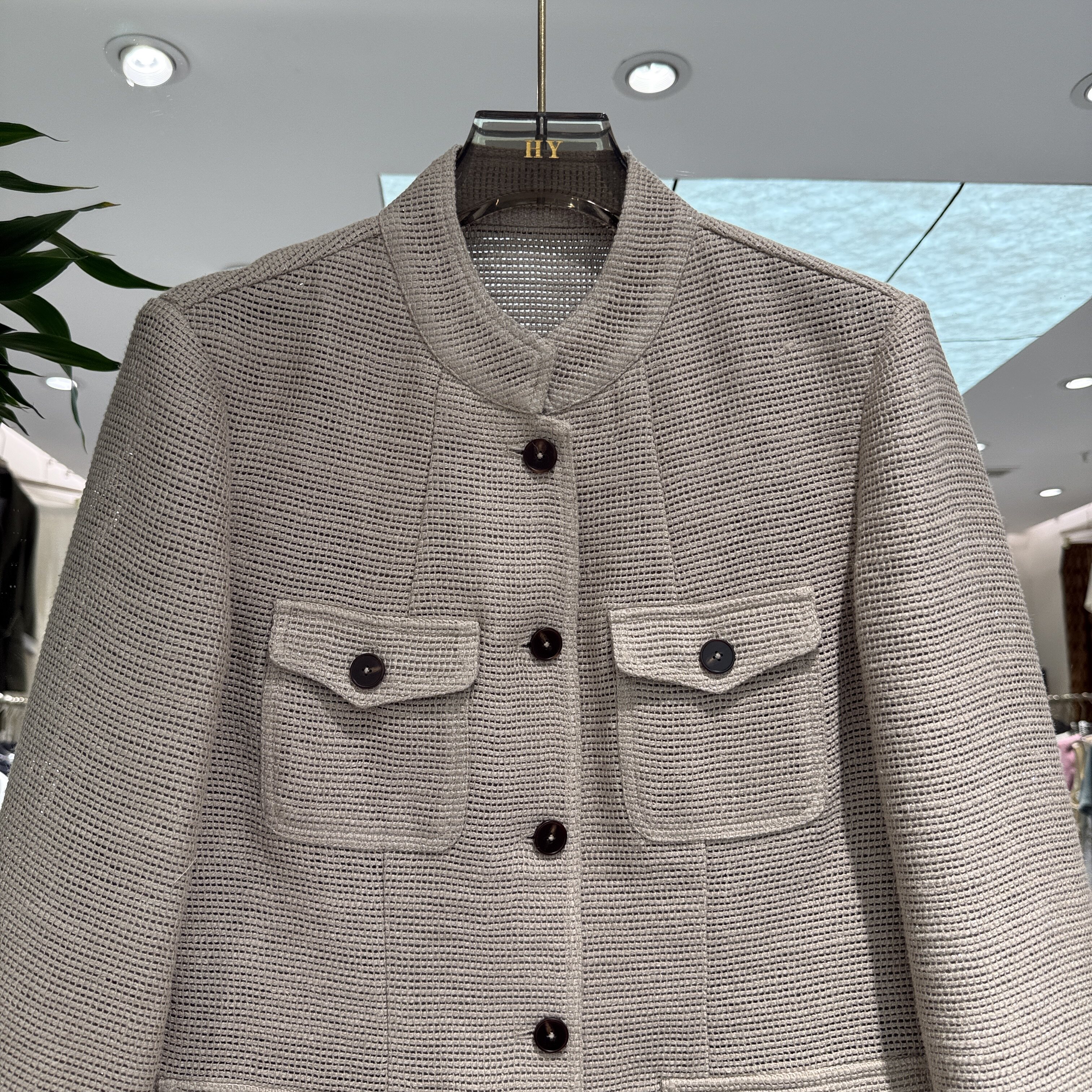 休闲款 立领单排扣百搭通勤显瘦时尚 镂空外套女 新款 欧洲站2026春季