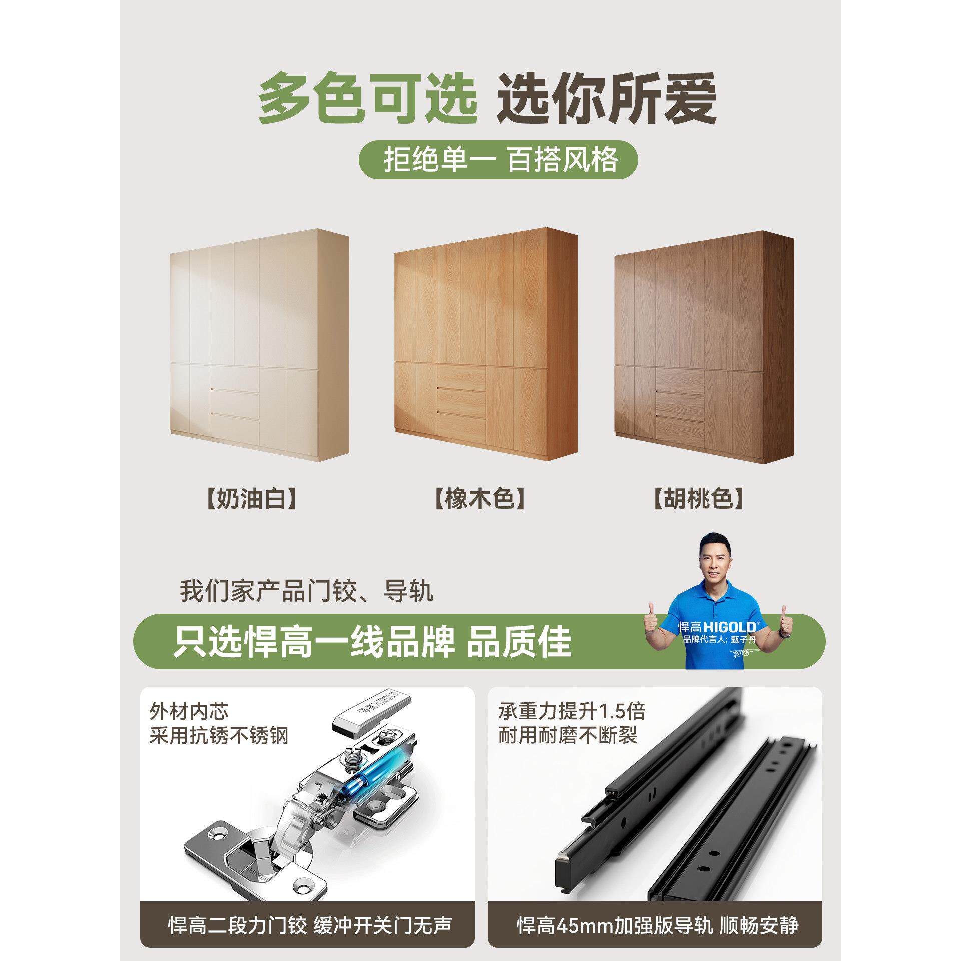 实木橡木六门衣柜家用卧室高2米4分段式 免拉手大衣橱胡桃色可定制