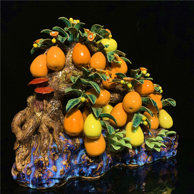 石湾公仔陶瓷枇杷创意家居客厅博古架电视柜饰品摆件植物工艺礼品