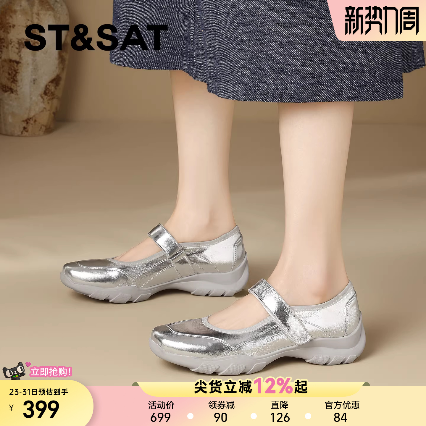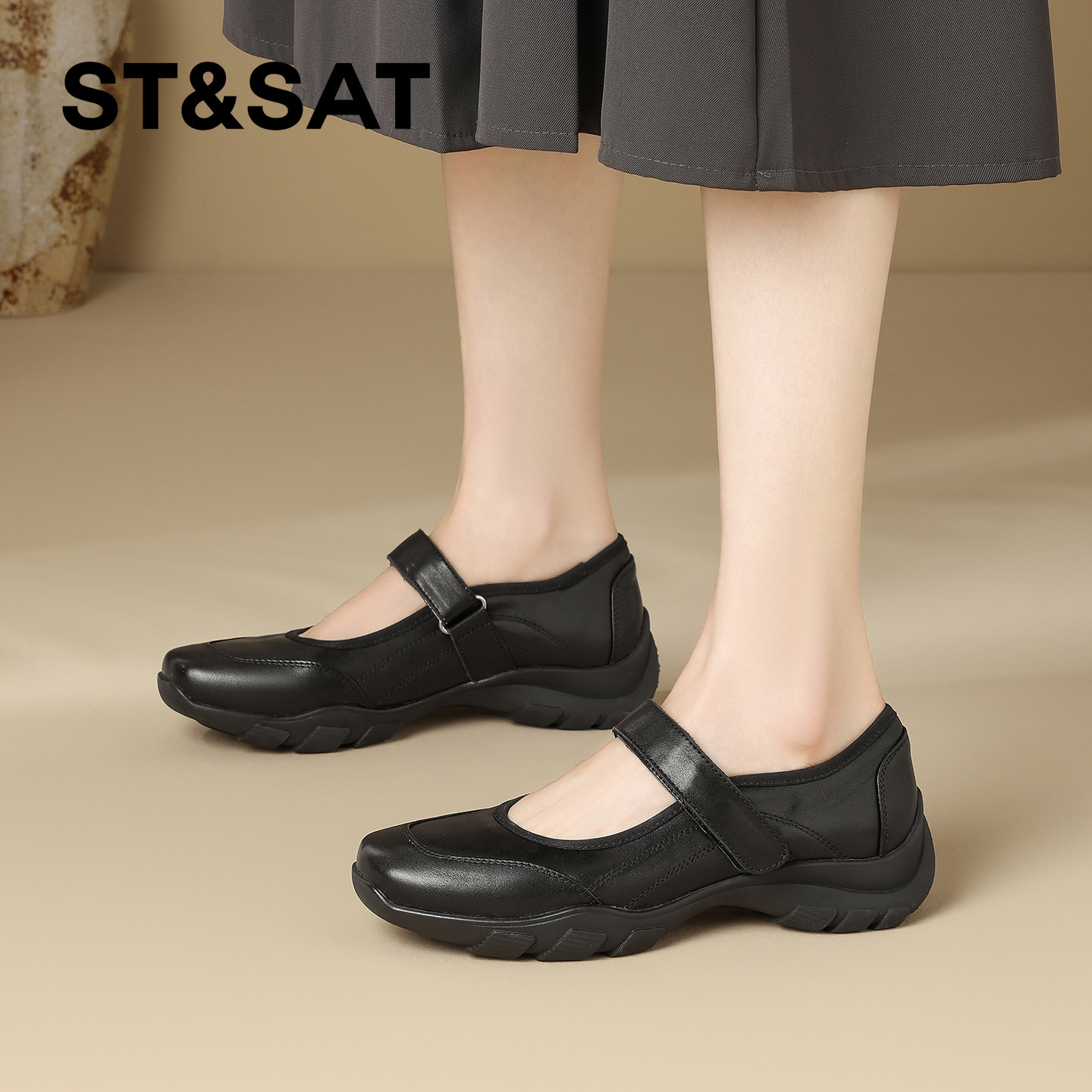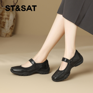 浅口通勤运动厚底单鞋 新款 女2026春季 星期六真皮休闲方头玛丽珍鞋