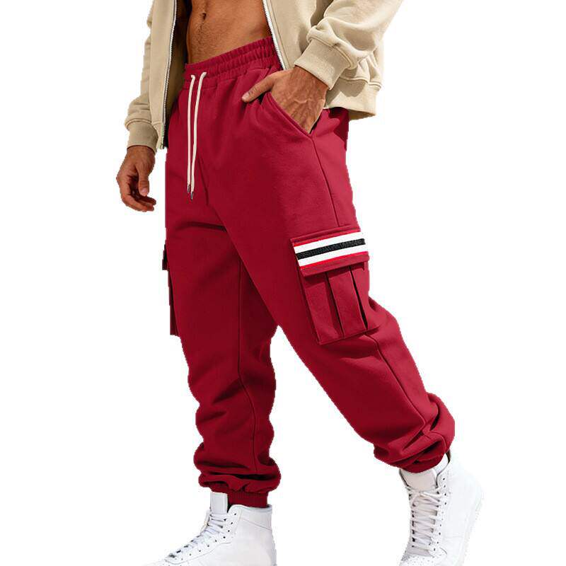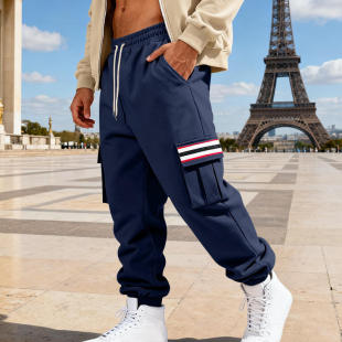 秋冬抓绒男式 多口袋拼条纯色运动休闲长裤 工装 男士 裤 跨境外贸美式