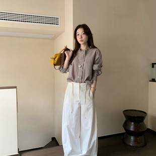 小衫 温柔灰调木耳边拼接设计感长袖 26年春款 W603A29805 薯条家