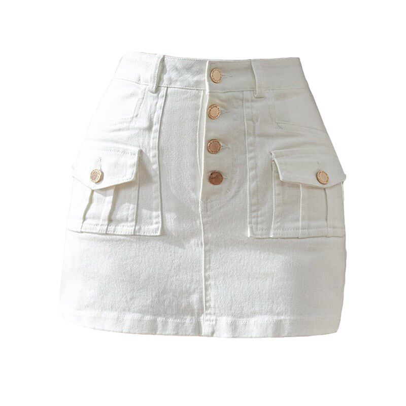 2024年新款 牛仔裙女夏装 弹力高腰显瘦防走光包臀短裙 排扣工装 时尚