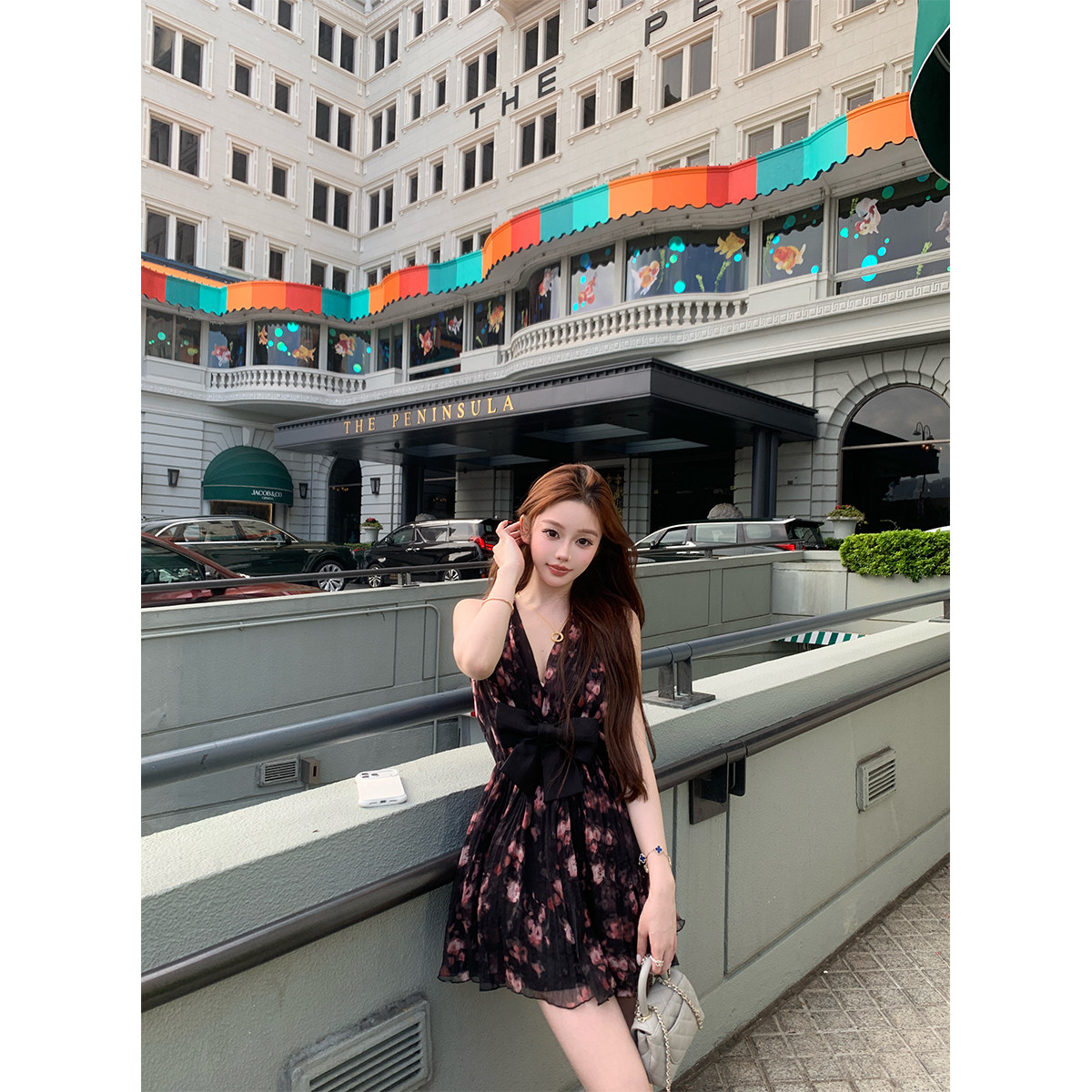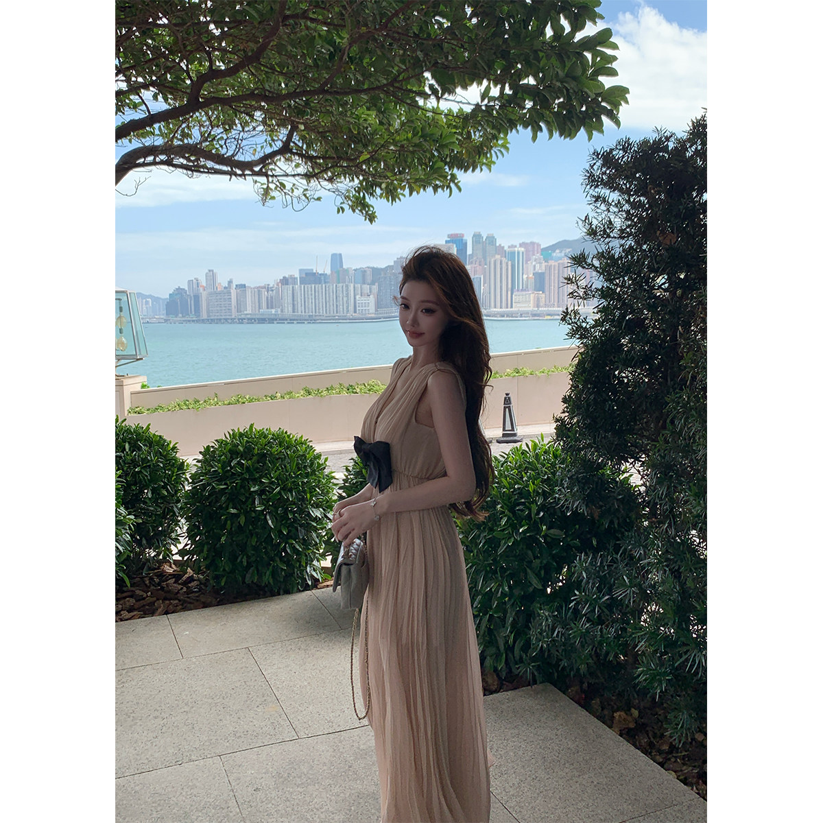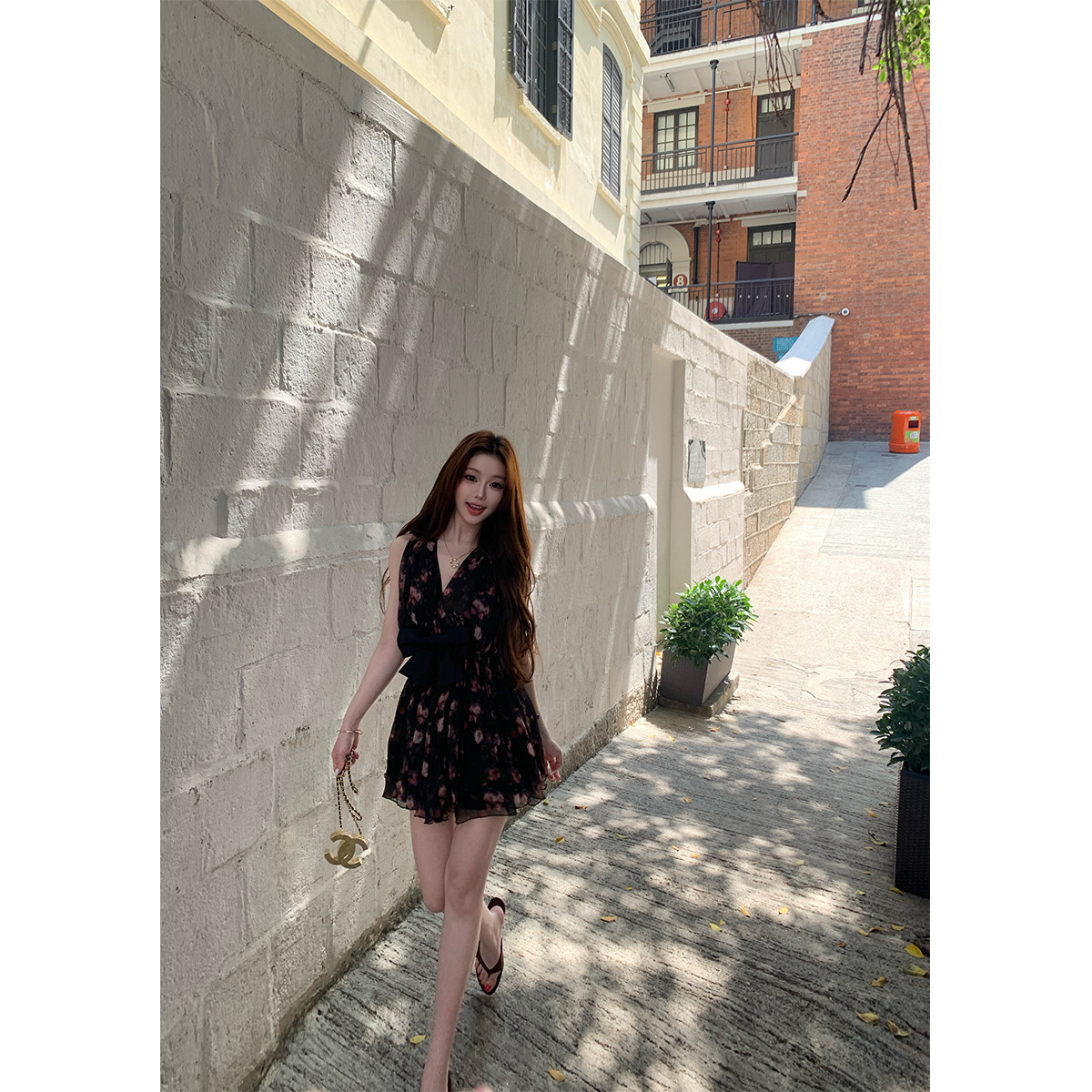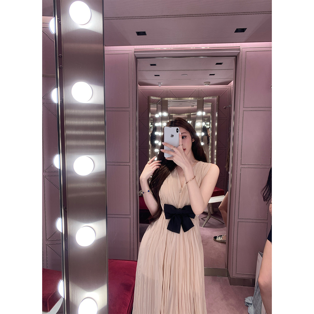 春新款 LIN 挂脖连衣裙女长短款 甜美收腰V领无袖 裙子 BOUTIQUE