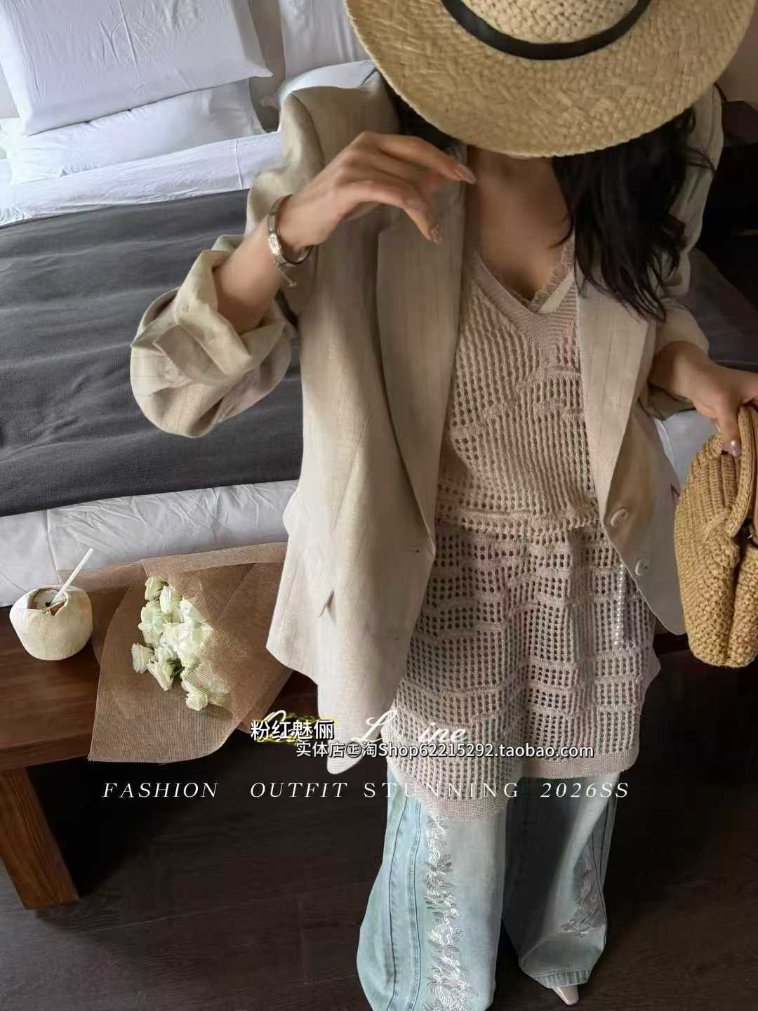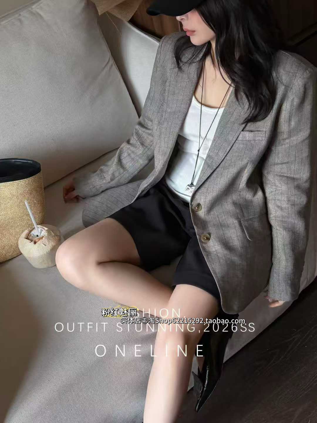 欧洲站3月22日㊣2026春欧货亚麻条纹二粒扣西装 外套