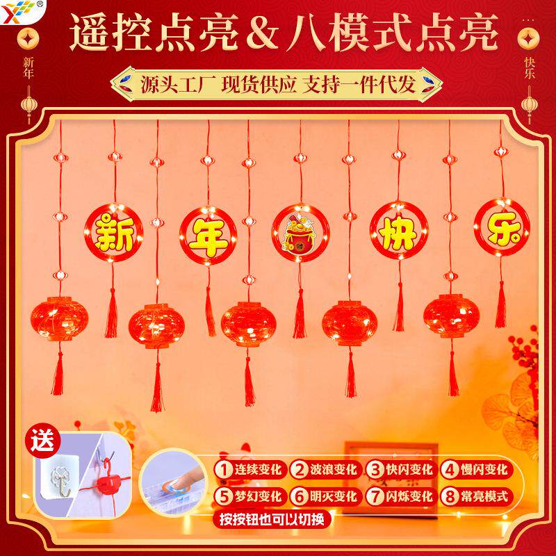 新年快乐LED彩灯闪灯挂饰2025蛇年春节室内房间氛围装 饰场景布置