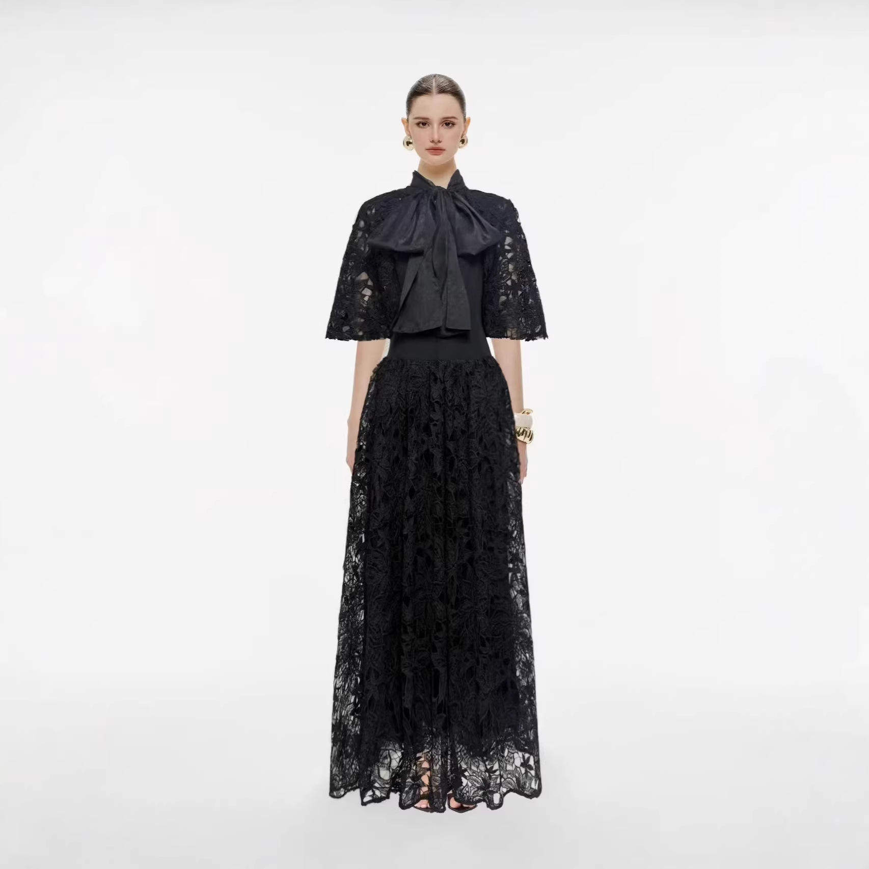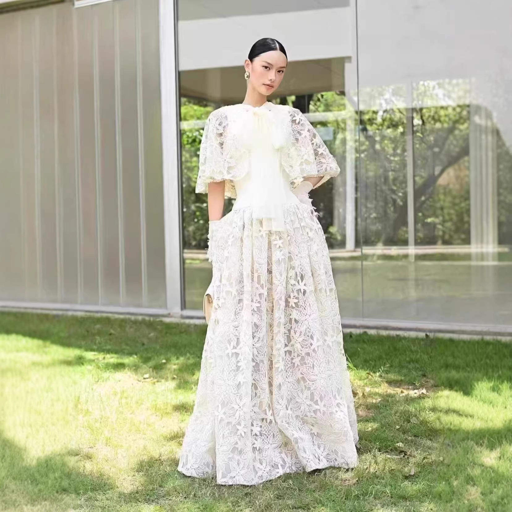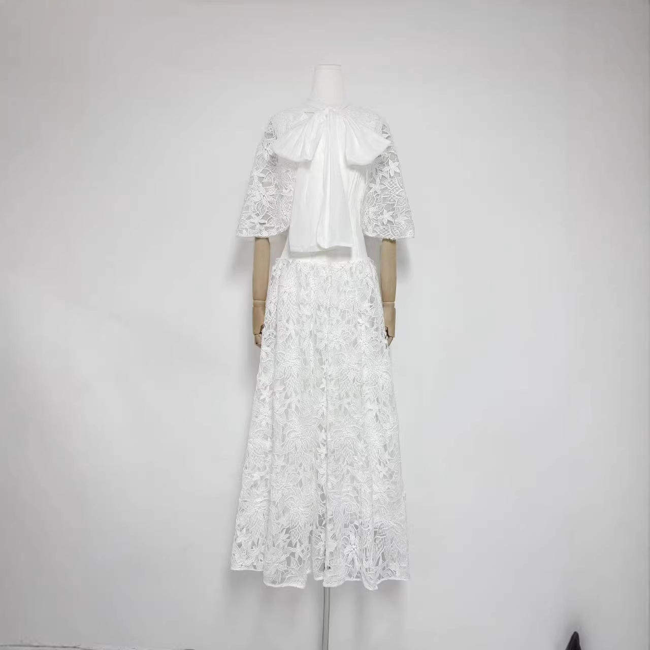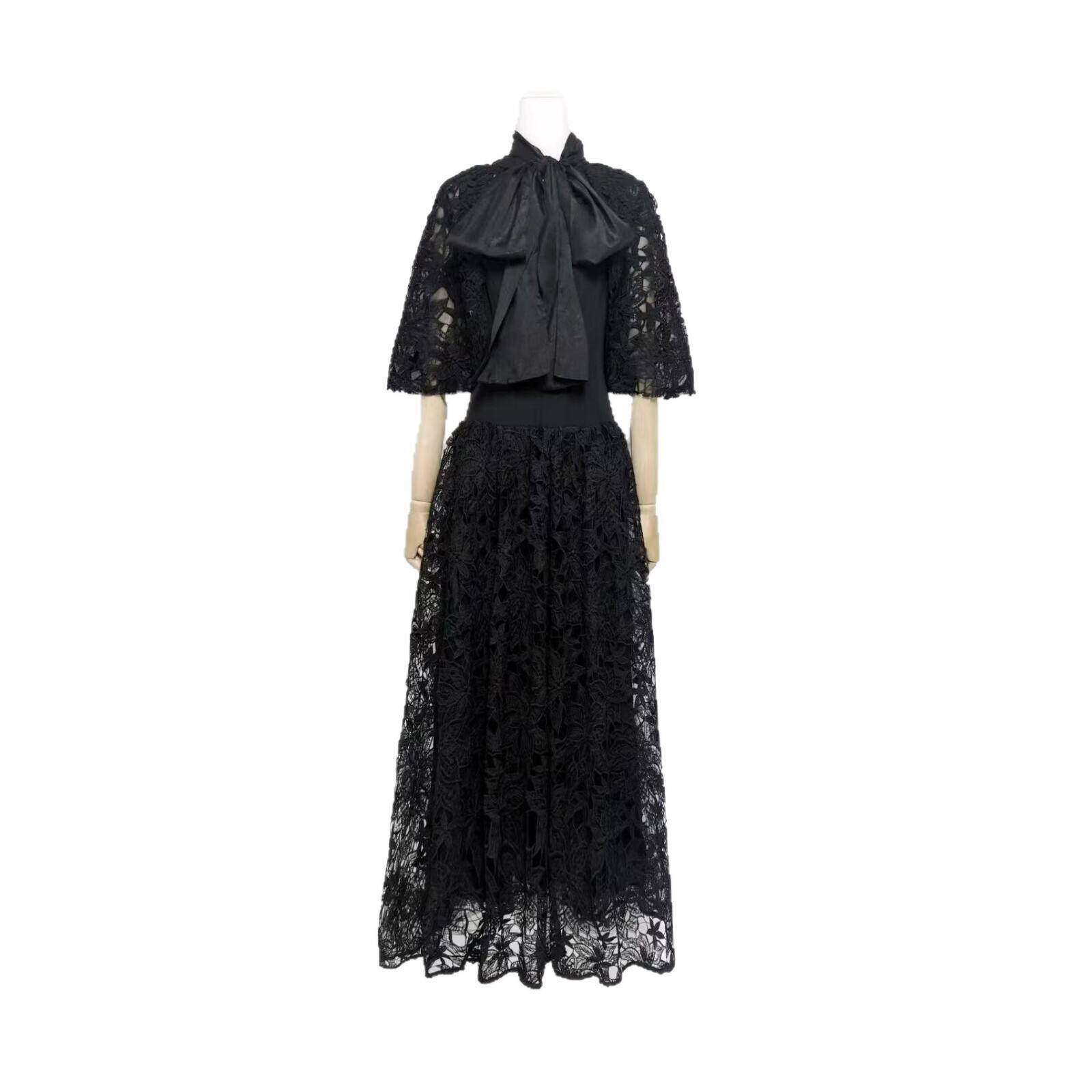 欧美连衣裙气质淑女长裙单件短袖 新款 跨境重工水溶刺绣纯色宽松版