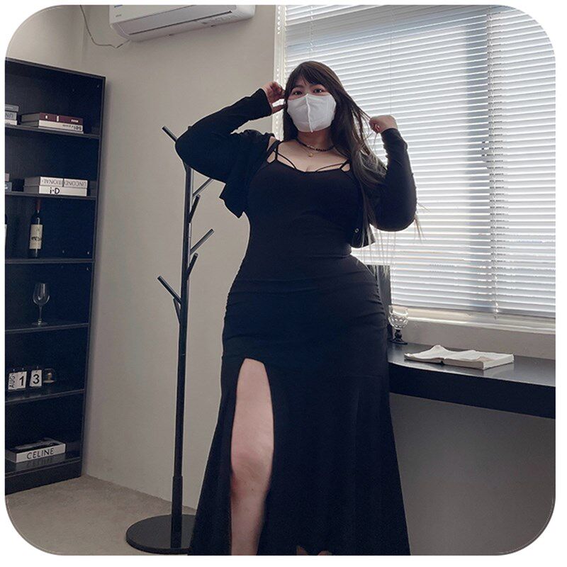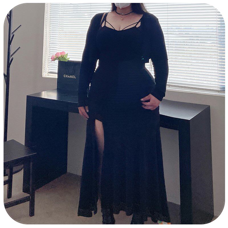 女装 180 大码 男友视角2.0 气质鱼尾开叉连衣裙搭小外套 陈橙橙