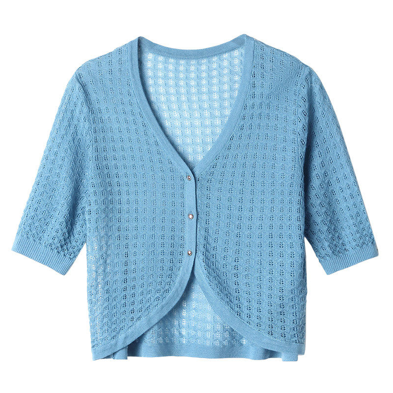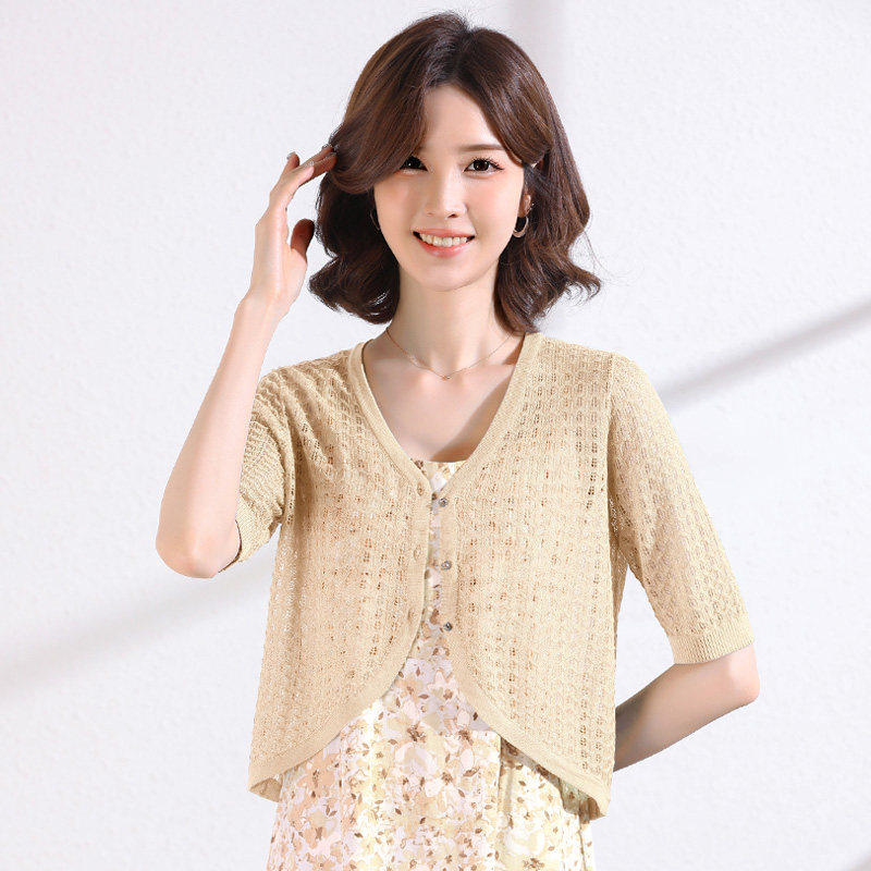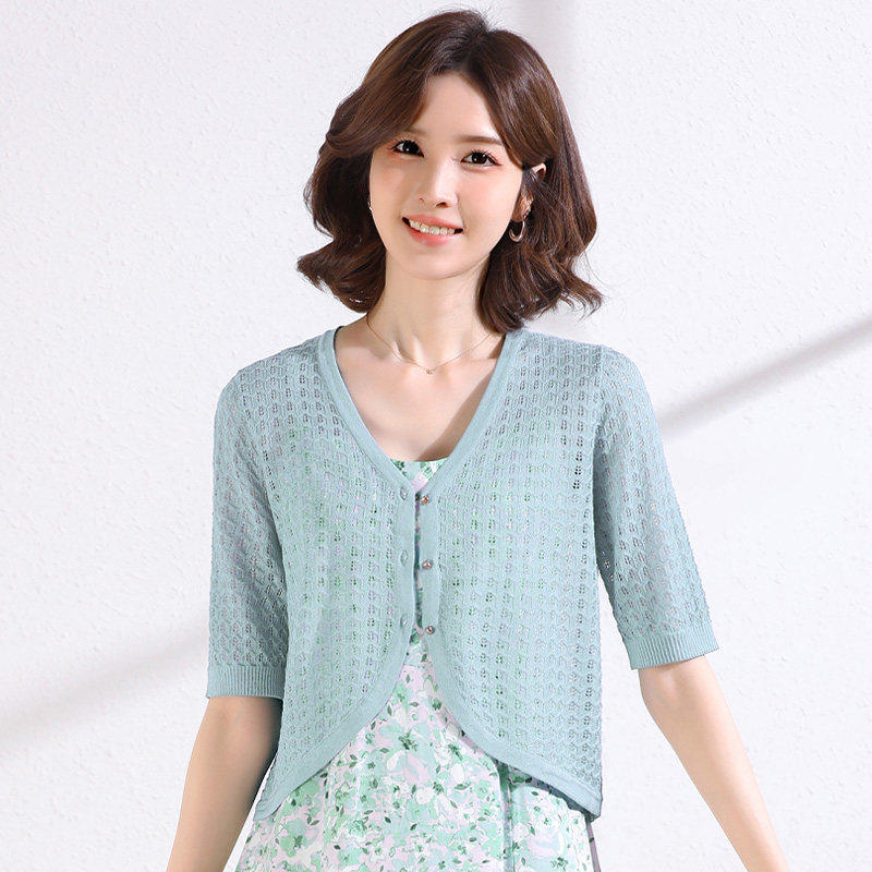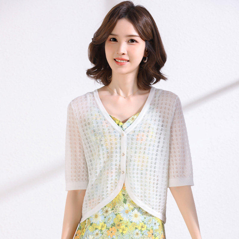 针织镂空小开衫 薄款 女夏季 披肩外搭半袖 防晒外套 冰丝短款 配裙子