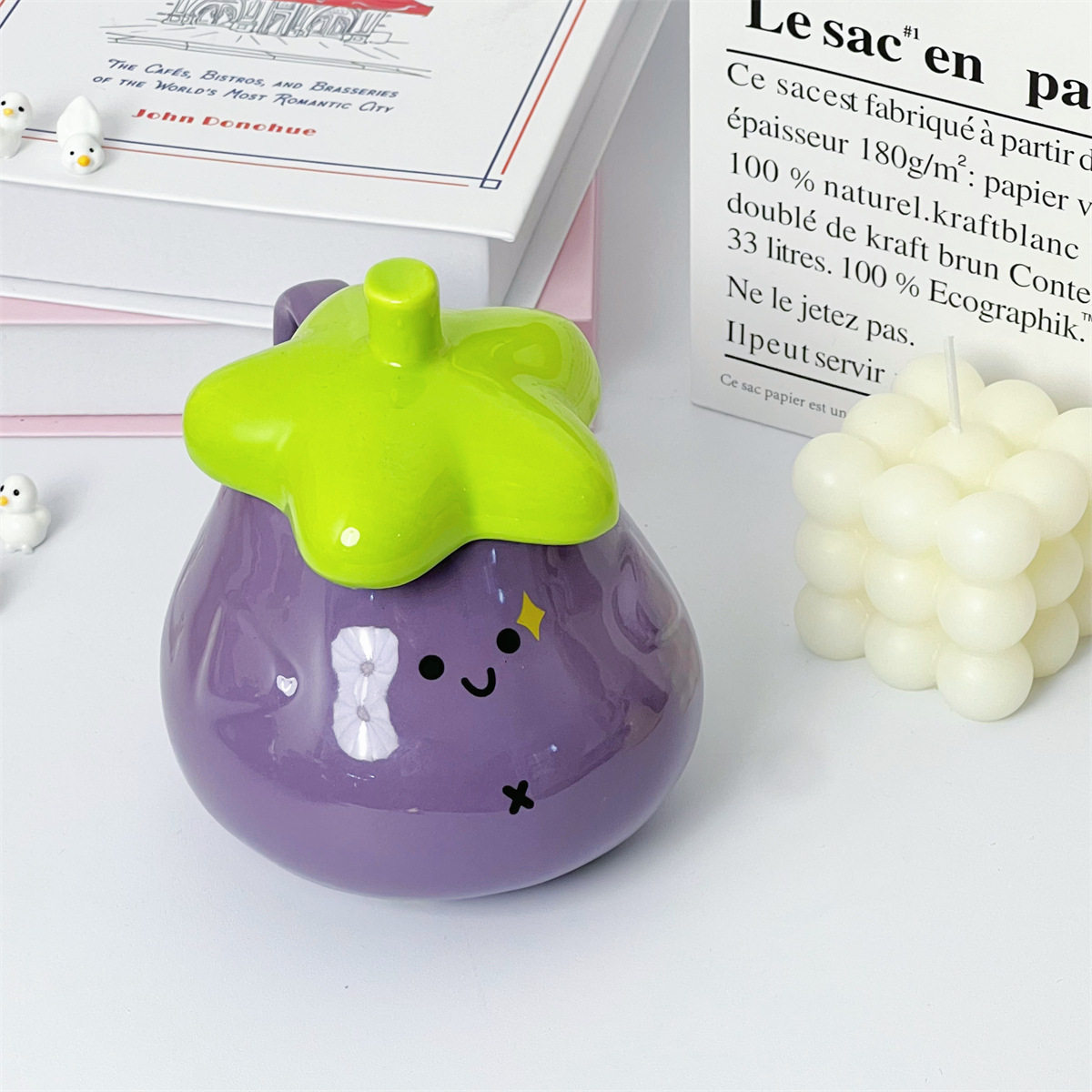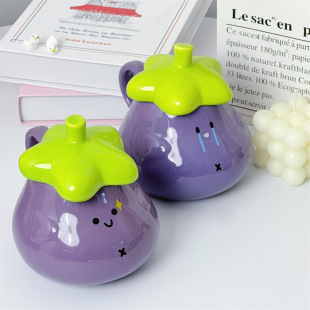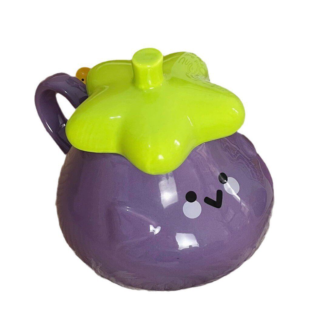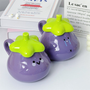 单品 马克杯带盖茄子水杯墩墩杯可爱呆萌杯子高颜值陶瓷杯送礼物